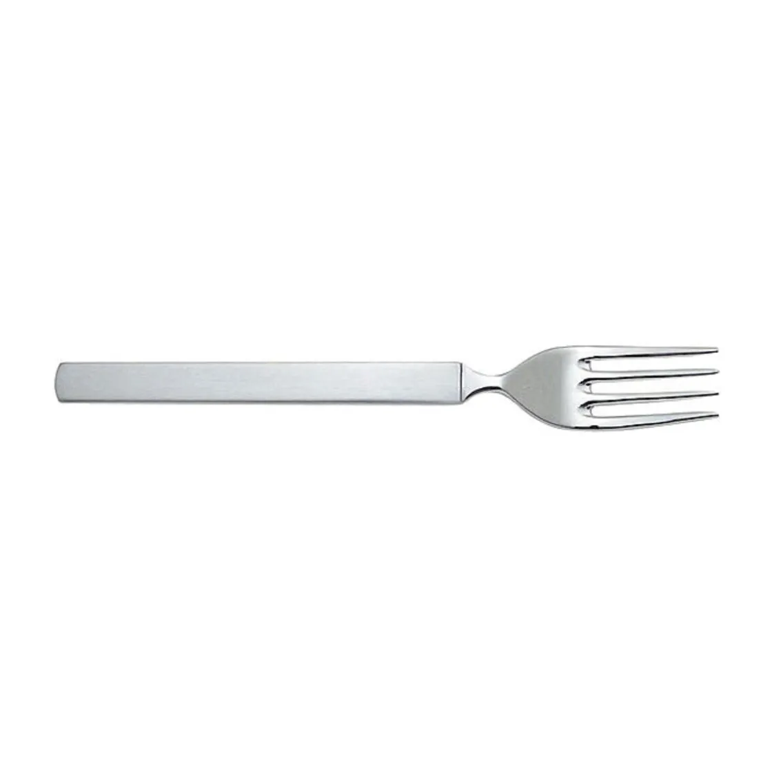 Die kantig moderne Form der Besteckgarnitur Dry von wird durch die raffinierte Kombination aus polierter und matter Oberfläche hervorgehoben. Der Entwurf des italienischen Designers Achille Castiglioni betont den glänzenden Teil durch die matt polierten Griffe der Messer, Gabeln und Löffel. Das macht das Besteck so interessant und sehr besonders. Es gehört schließlich nicht ohne Grund seit 1982 zum festen Sortiment im Hause Alessi.Mit der Dessertgabel runden Sie das Tafelbesteck Dry adäquat ab. Decken Sie zu besonderen Anlässen und auf Kaffeetafeln das passende Besteckteil zur Nachspeise oder einem Stück Kuchen ein.