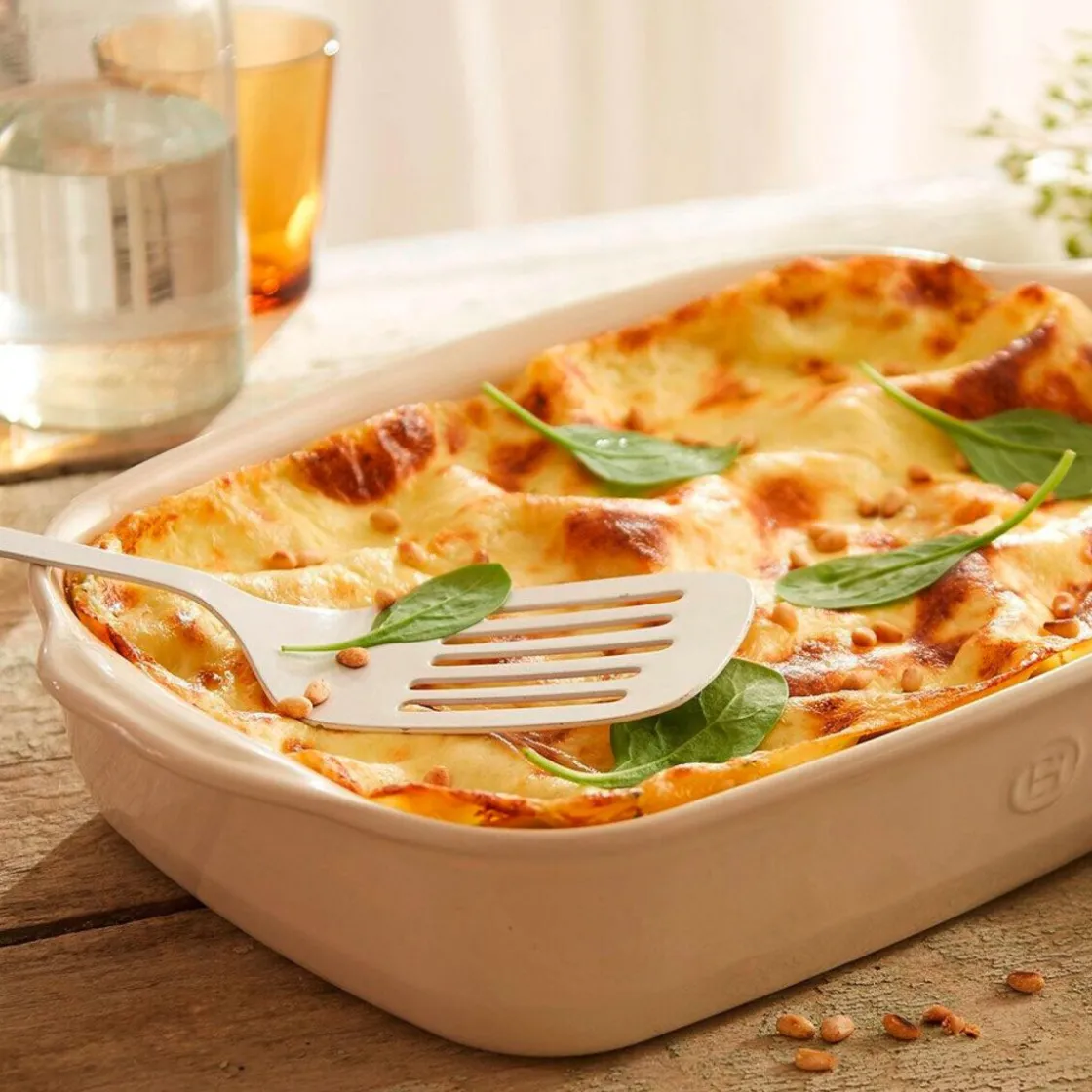 Die Gratinform Ultime Argile von eignet sich zur Zubereitung von Aufläufen oder Gratins für die ganze Familie. Die hochresistente Ofenkeramik sorgt auch bei dieser großen Variante für homogene Ergebnisse und gibt die Wärme zügig und zuverlässig an das ganze Gericht ab.