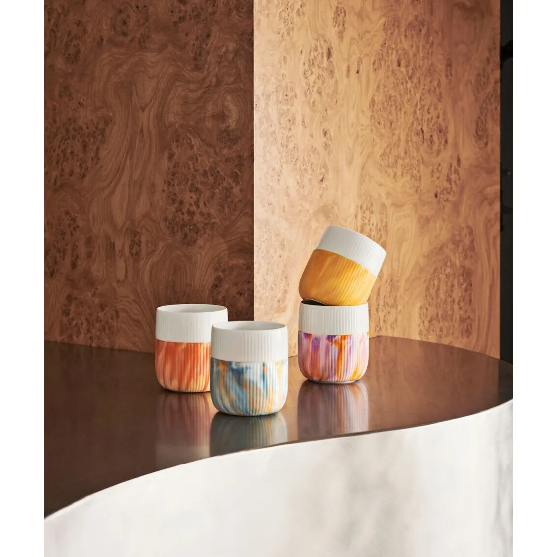 Mit dem Becher Contrast Gerippt Ocean Mist von bringen Sie die Farbpracht des Meeres direkt auf Ihre Tafel. Warme Nuancen treffen auf kühle Facetten und erinnern an den letzten Urlaub am Meer. Sorgen Sie mit diesem Gefäß für ein einladendes Ambiente auf Ihrem Tisch und ein effektvolles Gefühl in der Hand.