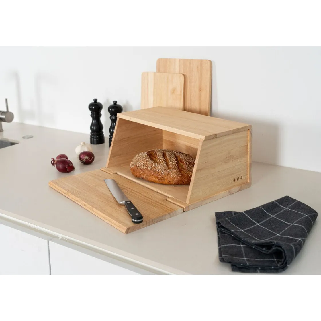 Um Brot sicher und stilvoll aufzubewahren, präsentiert den erstklassigen Brotkasten.