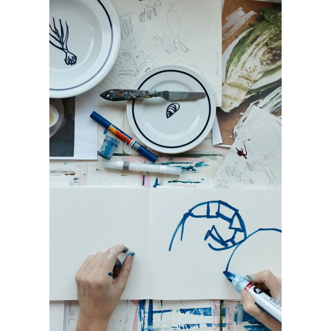 - Brotteller Solid Color Brasserie Marine mit einer blauen Kontur, die die Form unterstreicht