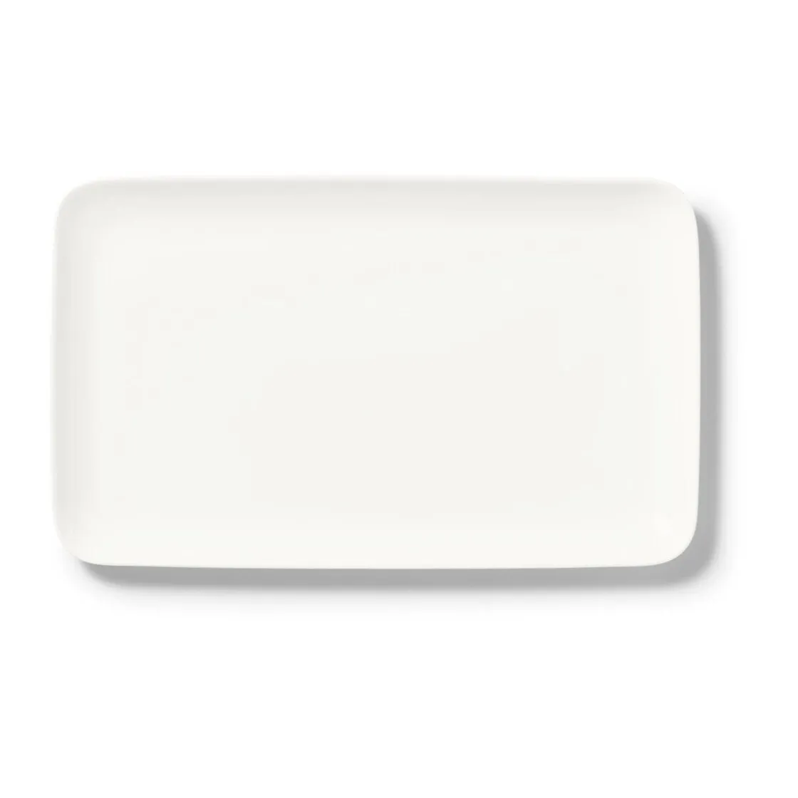 Die rechteckige Platte aus der Serie Fine Bone China Pure von eignet sich hervorragend zum Drapieren von kleinen Köstlichkeiten und himmlischen Verführungen. Die Besonderheiten und der durchdringende Schein des Fine Bone Chinas kommen durch die klare Ausgestaltung der Platte hervorragend zur Geltung.