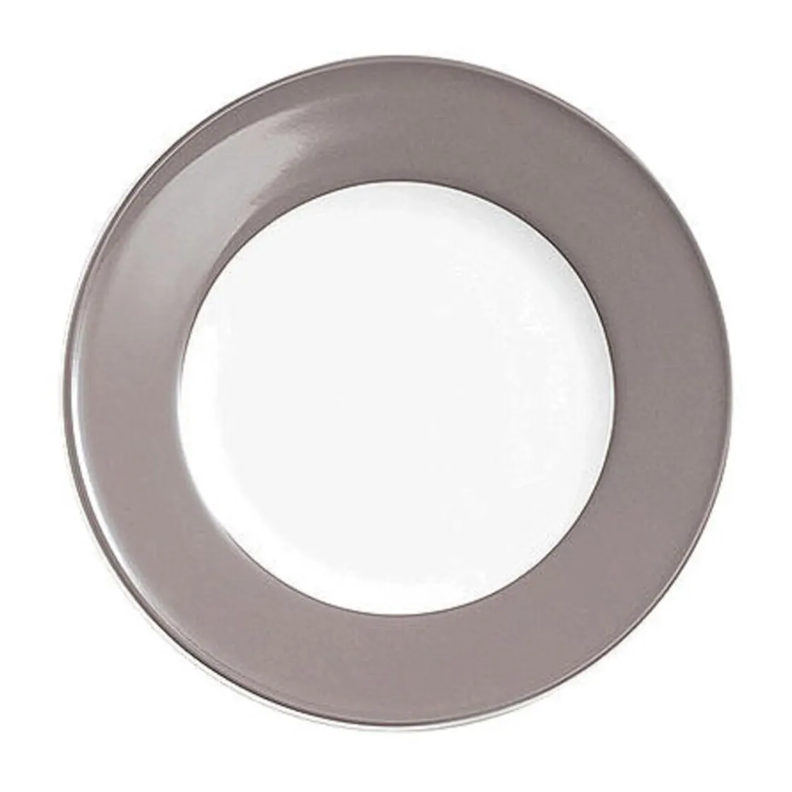 Der Speiseteller aus der Serie Solid Color Kiesel von besticht durch das Kontrastspiel aus weißem Spiegel und grauer Fahne. So lassen sich ganz einfach verspielte Akzente auf Ihrer Tafel setzen.