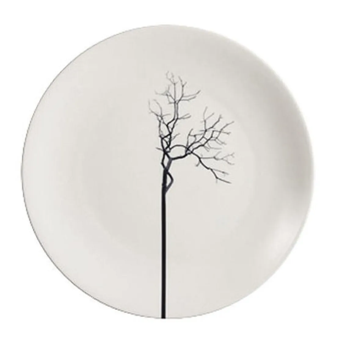 Cremeweiße Teller eignen sich äußerst gut zum Anrichten diverser Speisen. Zudem haben sie Stil – dies beweist der flache Teller Black Forest der deutschen Marke Dibbern. Die Platte aus hochwertigem Knochenporzellan hat einen Durchmesser von 28 cm. Der Teller punktet durch seine klare Form und den stufenlosen Übergang. Das Design weist neben der schönen Farbe einen verzweigten Baum auf, der durch einen wunderbaren Schwarz-Weiß-Kontrast in Szene gesetzt wird. Der klassische Teller ist spülmaschinenfest und zeichnet sich durch seine hohe Haltbarkeit aus.