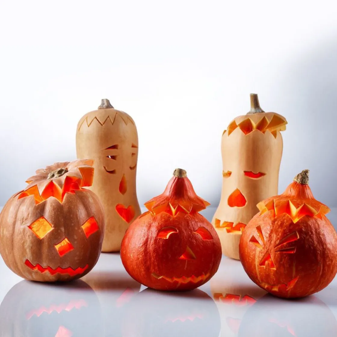 - inklusive Schnitzvorlagen für Kürbisgesichter als Inspiration