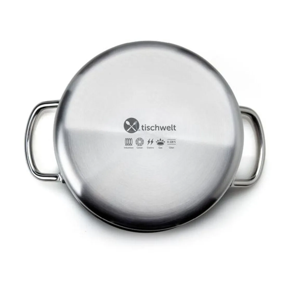 - gefertigt aus zwei Schichten induktivem Edelstahl, die sich um einen dreifachen Aluminiumkern legen
