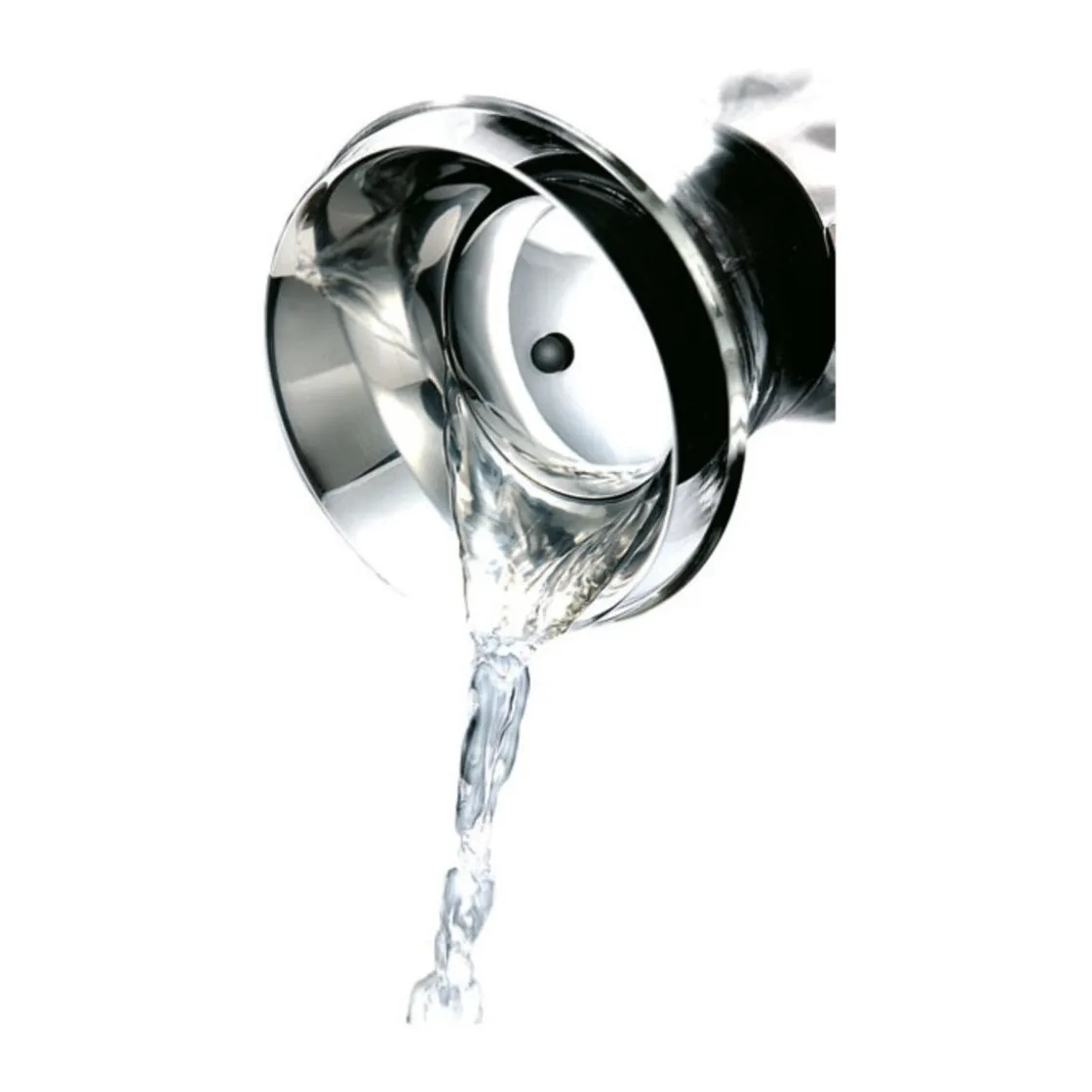 Die tropffreie Kühlschrankkaraffe aus dem Hause hat die Form einer schlichten Milchflasche und passt ideal in jede Kühlschranktür. Ihre Öffnung ist groß genug, um Eiswürfel oder Zitronenscheiben einzufüllen. Der Flip Flop Deckel mit Gummiabdichtung ist inklusive und öffnet sich beim Einschenken automatisch. So bleiben Fruchtscheiben, Beerenobst oder Minzzweige im Wasser zurück und sorgen weiterhin für ein erfrischendes Aroma. Auch Eiswürfel fallen nicht mit einem schwungvollen „Plopp“ ins Glas.