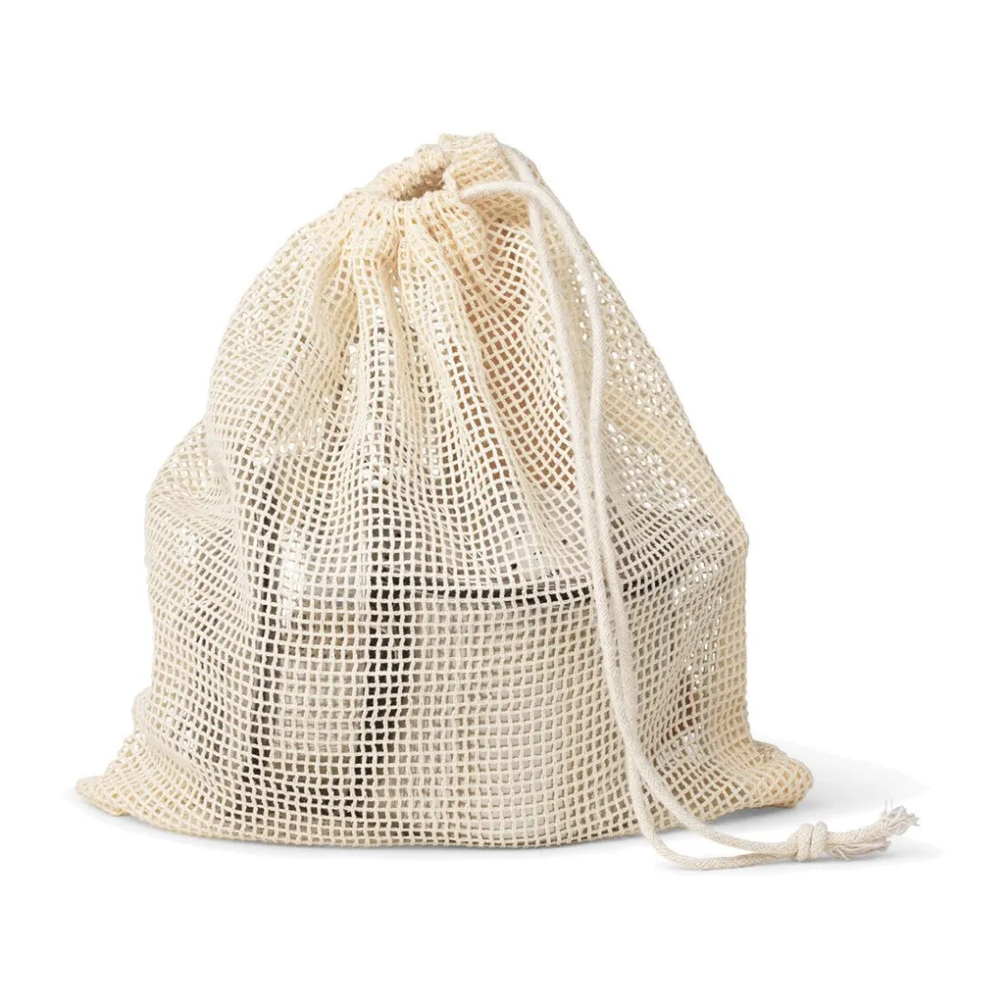 - in einem CE-geprüften Netzbeutel aus Baumwolle verpackt