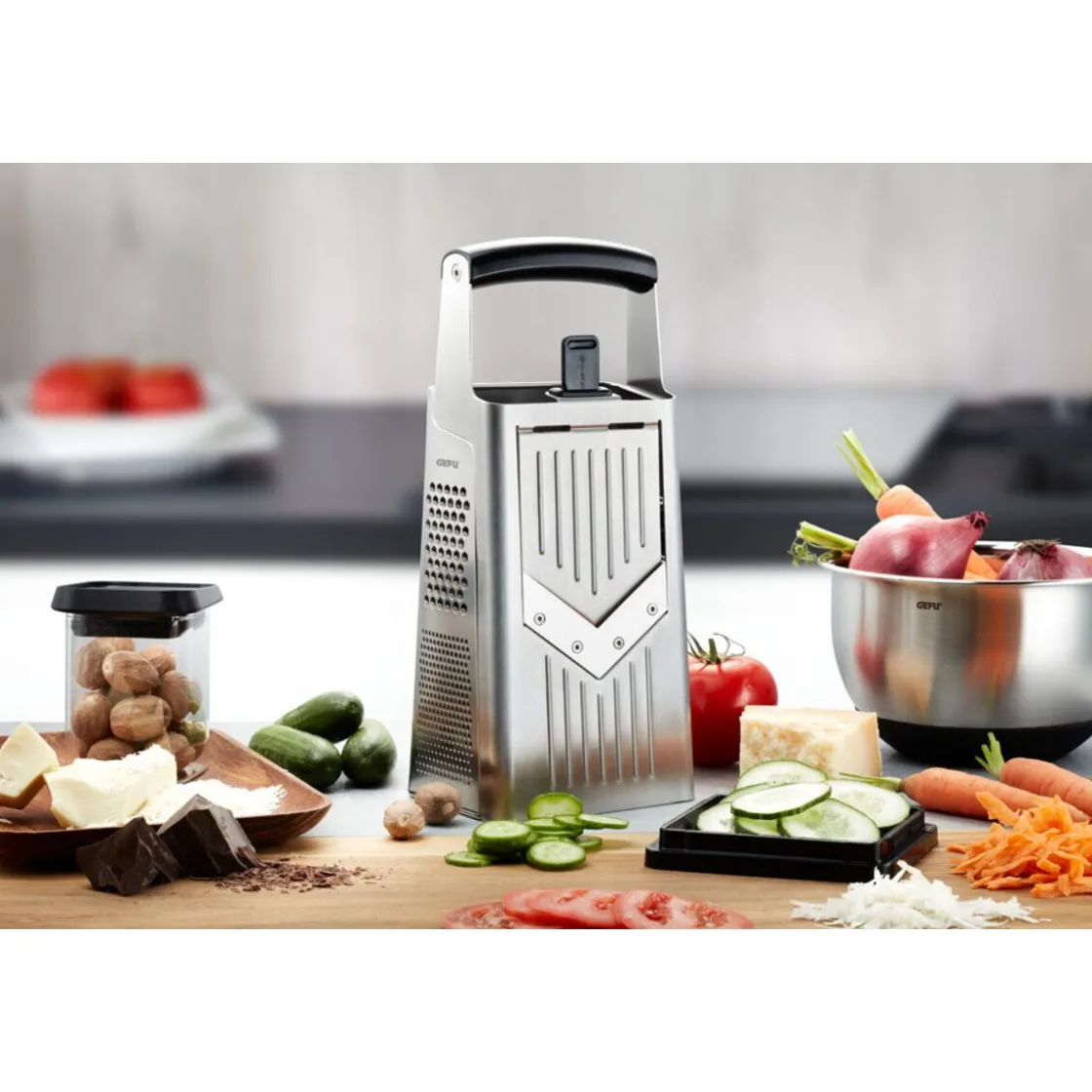 - 2-Wege-Reibefläche für Schokoladenflocken oder flockigen Käse