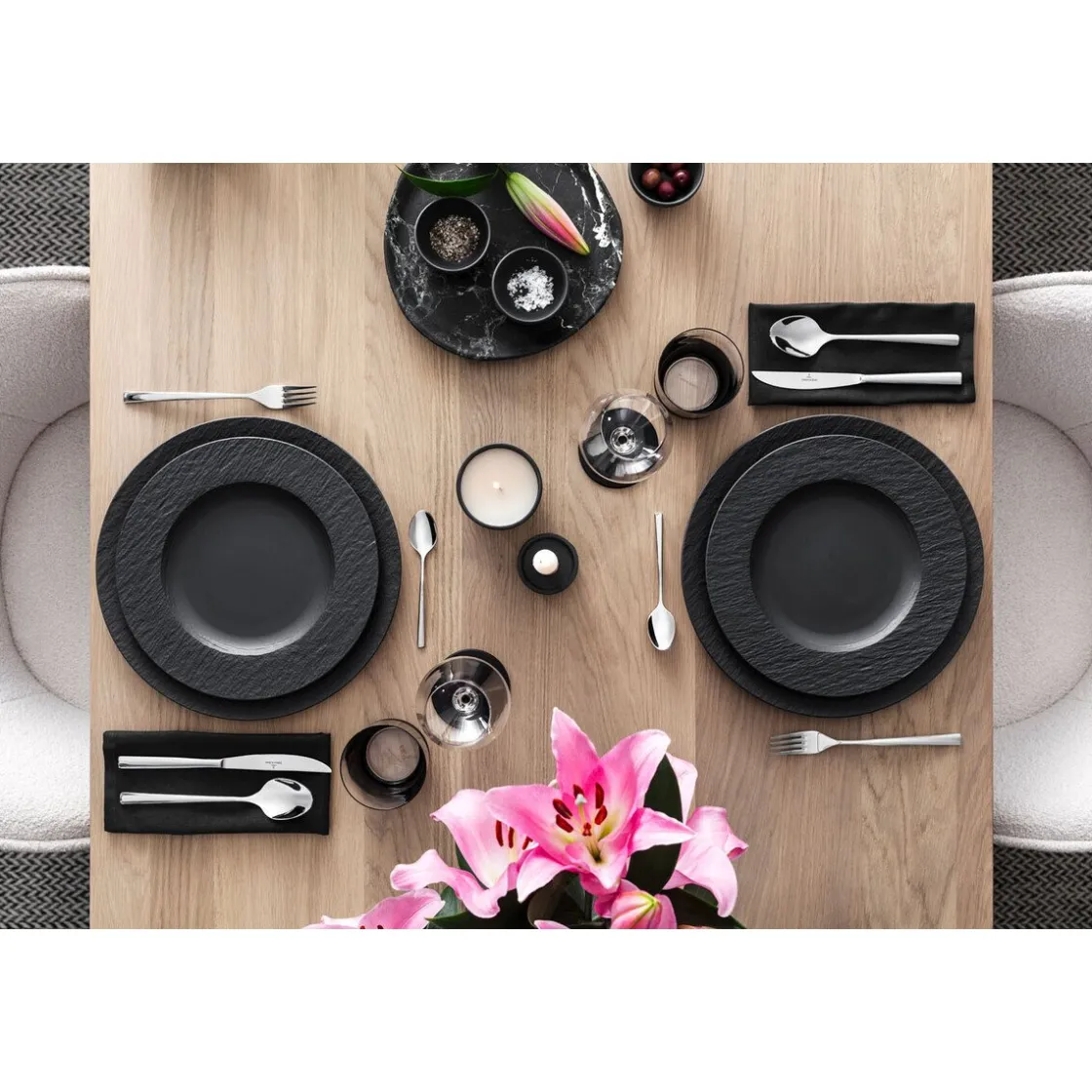 Die Geschirrserie Manufacture Rock von kombiniert modernes Design mit einer ganz besonderen Haptik. Das mattstrukturierte Porzellan mit Akzenten in Schiefer-Optik unterstreicht den handwerklichen Stil und die Liebe zu feinen Details, für die Villeroy & Boch seit 1748 bekannt ist.