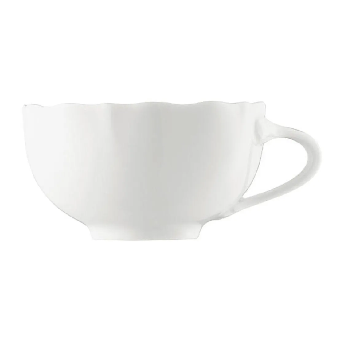 Die schalenförmige Tasse ist aus hochwertigem Hartporzellan gefertigt und mit einem zarten Henkel versehen. Ihr Fassungsvermögen liegt bei 220 ml. Der obere Rand ist wellenförmig gearbeitet, was ihr eine besonders filigrane Optik verleiht. Sie können die Tee-Obertasse im Geschirrspüler reinigen. Auch der Einsatz in der Mikrowelle ist problemlos möglich. Gönnen Sie sich eine ruhige Minute Teegenuss mit dieser verspielten Tasse.