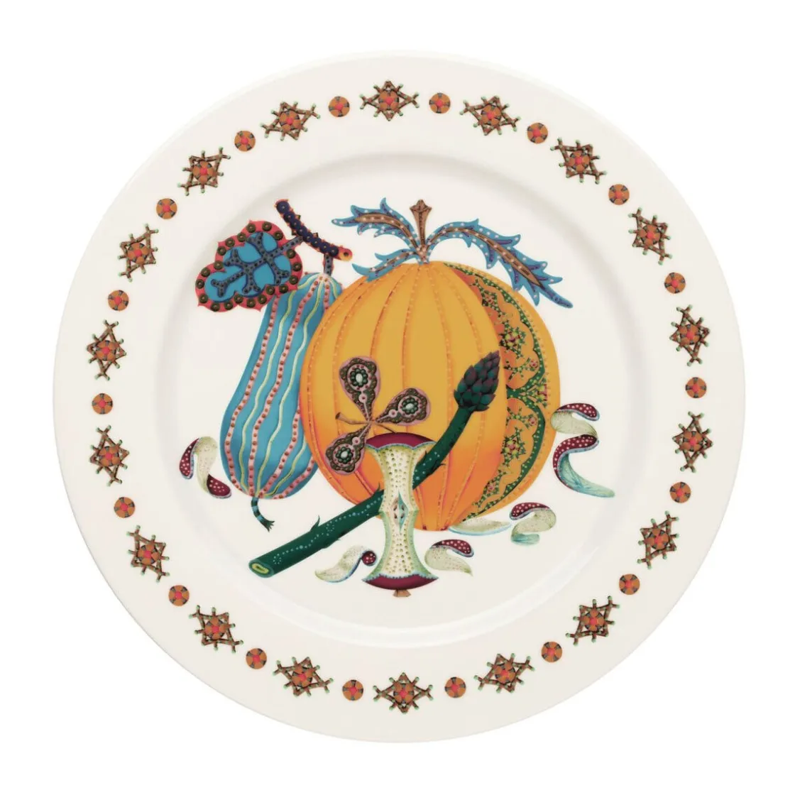 Der Teller Taika Sato von begeistert durch sein kunstvolles Motiv. Obst und Gemüse werden abstrakt illustriert dargestellt und verleihen der Tafel einen magischen Charme. Begeistern Sie Ihre Gäste mit verspielter Leichtigkeit, die sich mit diesen Tellern auf dem Tisch breit macht.