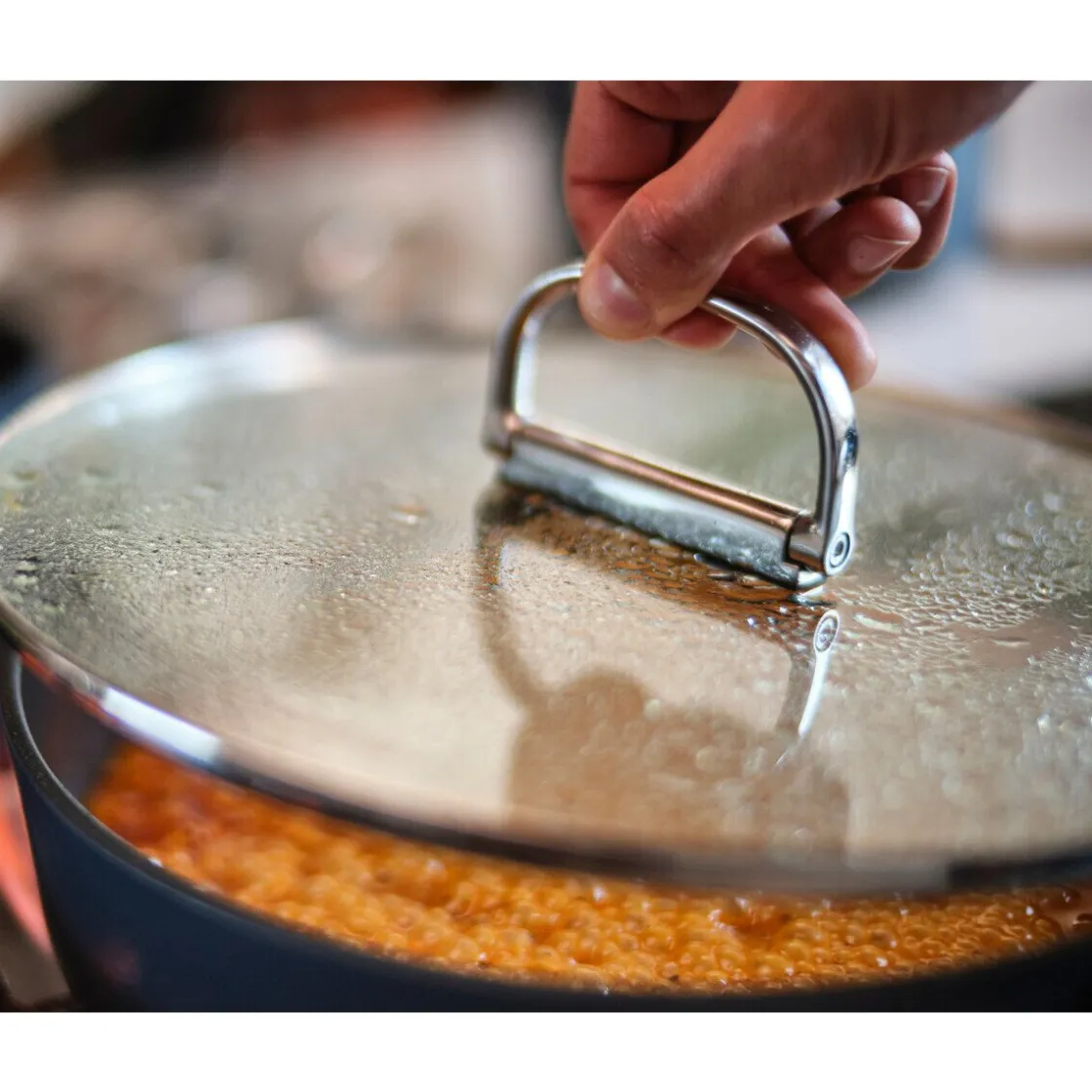 - transparenter Deckel aus gehärtetem Glas für ein praktisches Sichtkochen