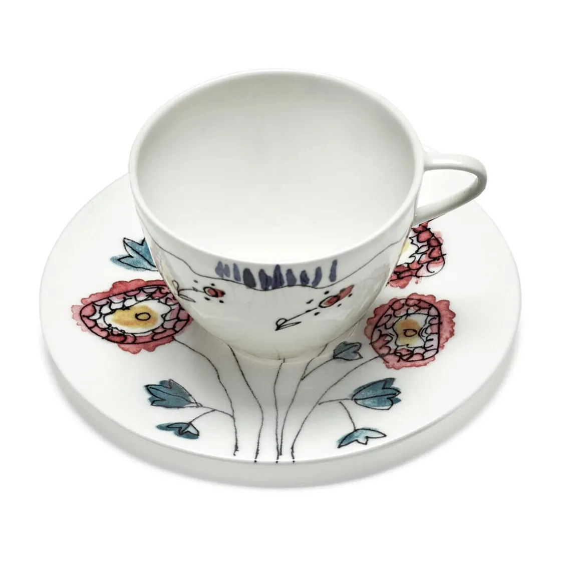 Die Kaffeetasse mit Untere Midnight Flowers Anemone Milk Mauve von ist mit handgemalten Anemonen verziert, die dem weißen Bone China Leben einhauchen. Kreieren Sie mit diesen Geschirrstücken eine hübsche Blumenwiese mitten auf Ihrer Tafel.