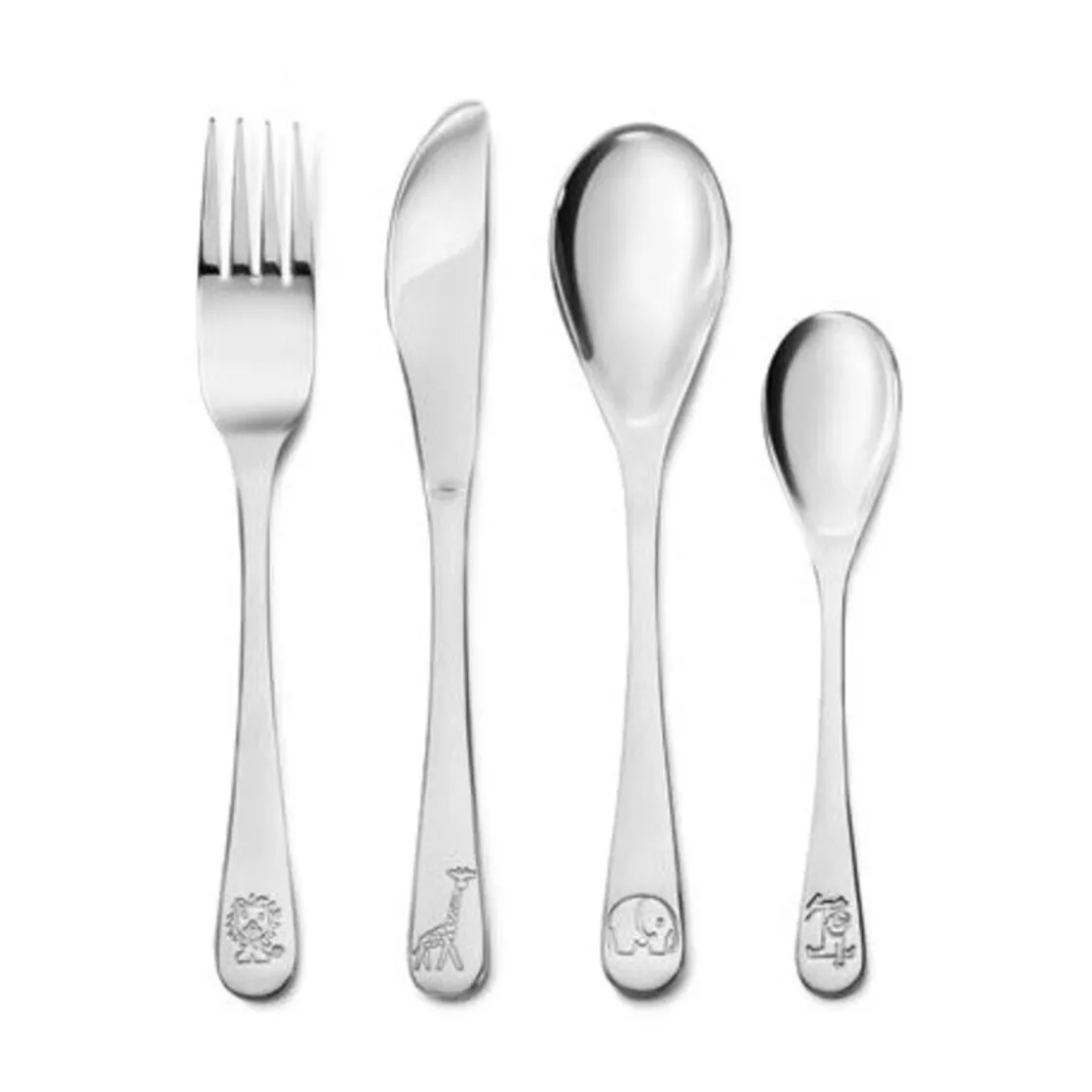 Das Kinderbesteck-Set Miffy Zoo von ist geprägt von den lustigen Tieren aus dem Zoo, die im Film Miffy eine Rolle spielen. Da haben wir einen Elefanten, eine Giraffe, einen Löwen und ein verspieltes Äffchen, die allesamt Ihrem Kind spiegeln, dass Essen ganz besonders viel Freude macht, sonst würden sie sich ja auch nicht auf den Besteckteilen niederlassen.