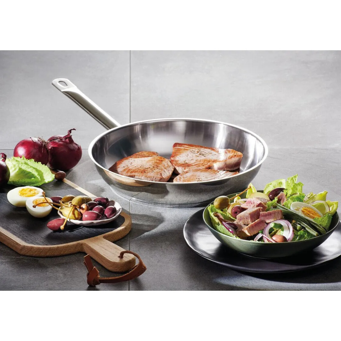 Mit der Bratpfanne Industar von brutzelt und dampft es in der eigenen Küche wie im Restaurant. Da wird Ihr Fleisch saftig und knusperbraun und Ihr Gemüse zart oder knackig. Und ganz nebenbei sparen Sie mit der leistungsstarken Pfanne auch noch Energie, weil der mehrlagige ecotherm Allherd-Aluminium-Kapselboden die Hitze ideal speichert und gleichmäßig verteilt.