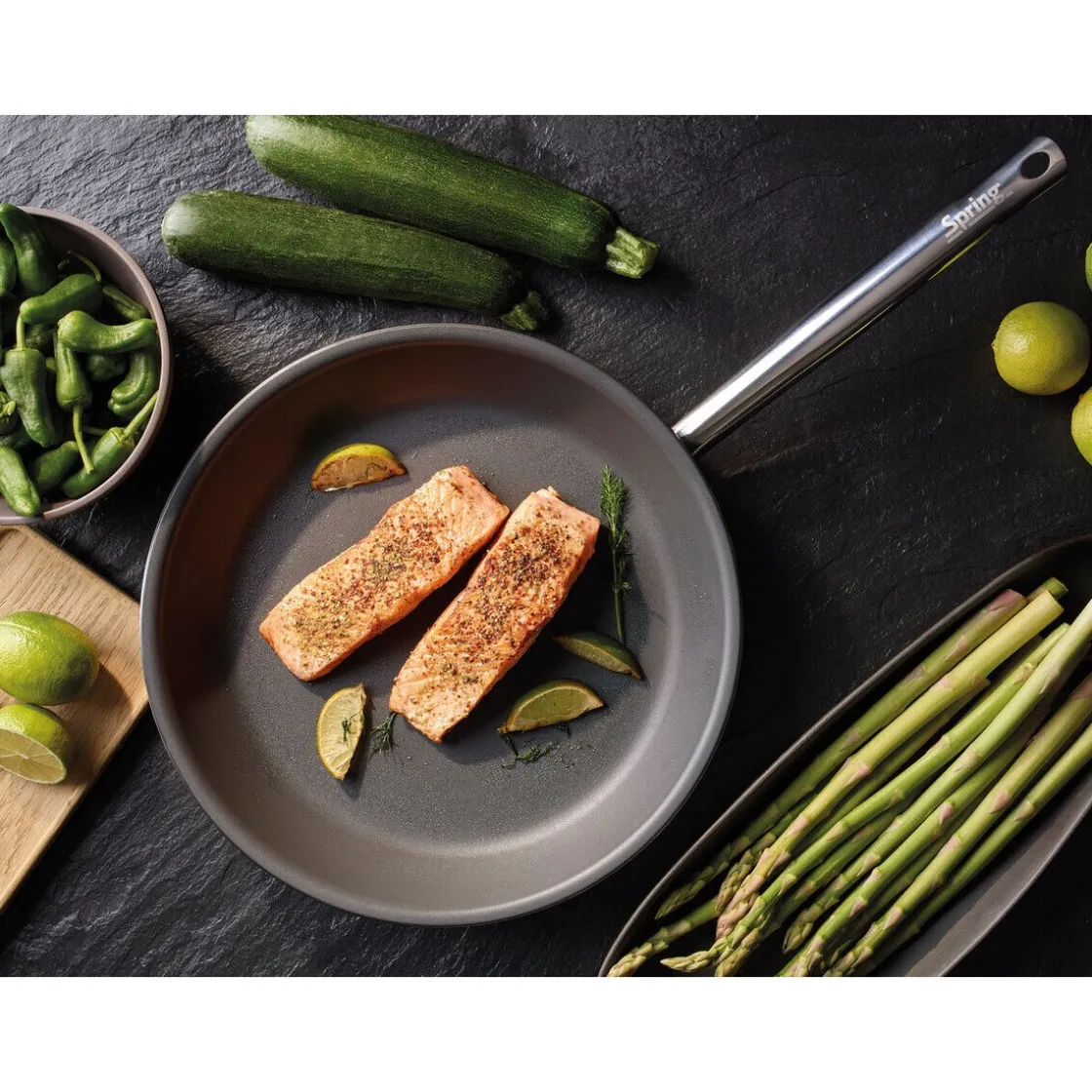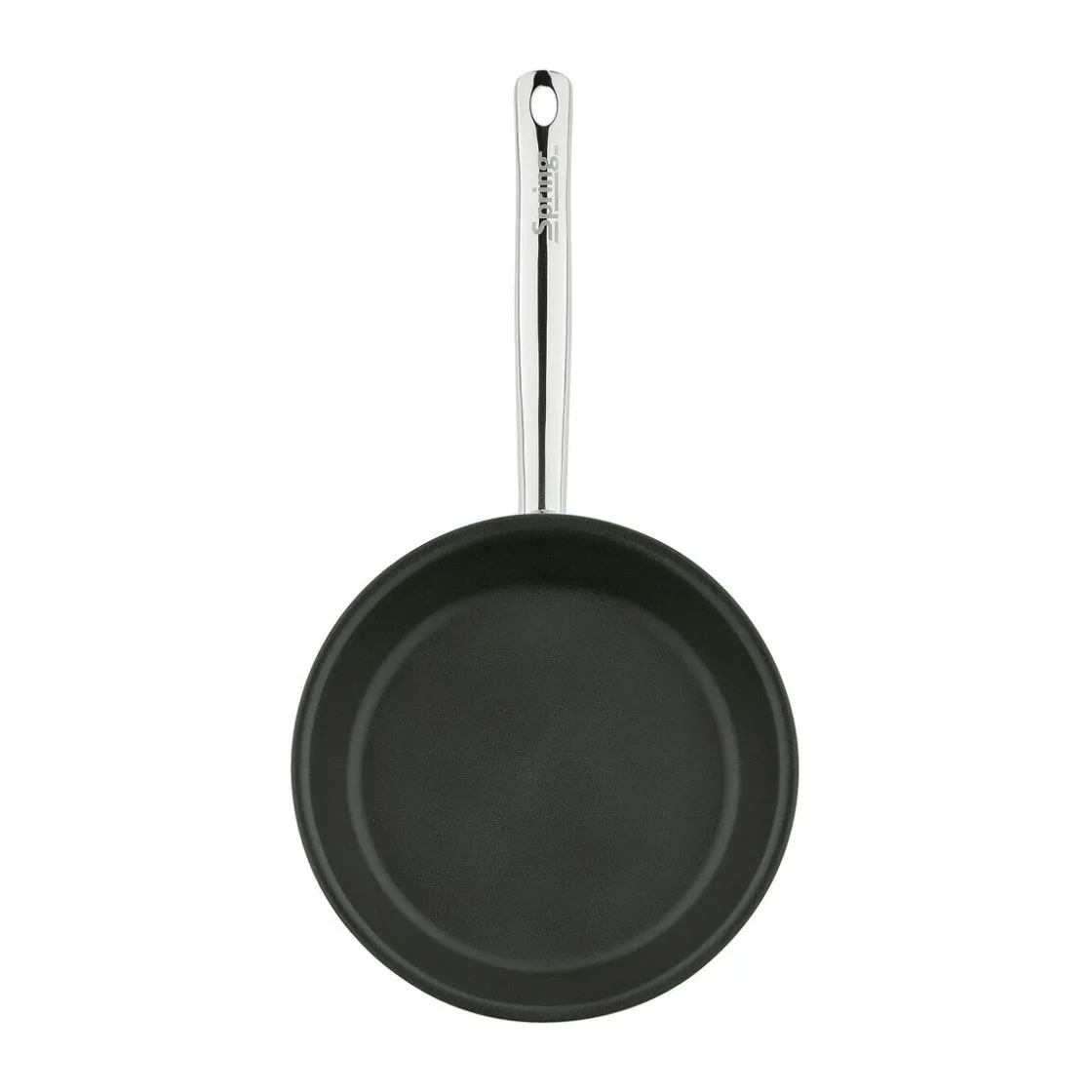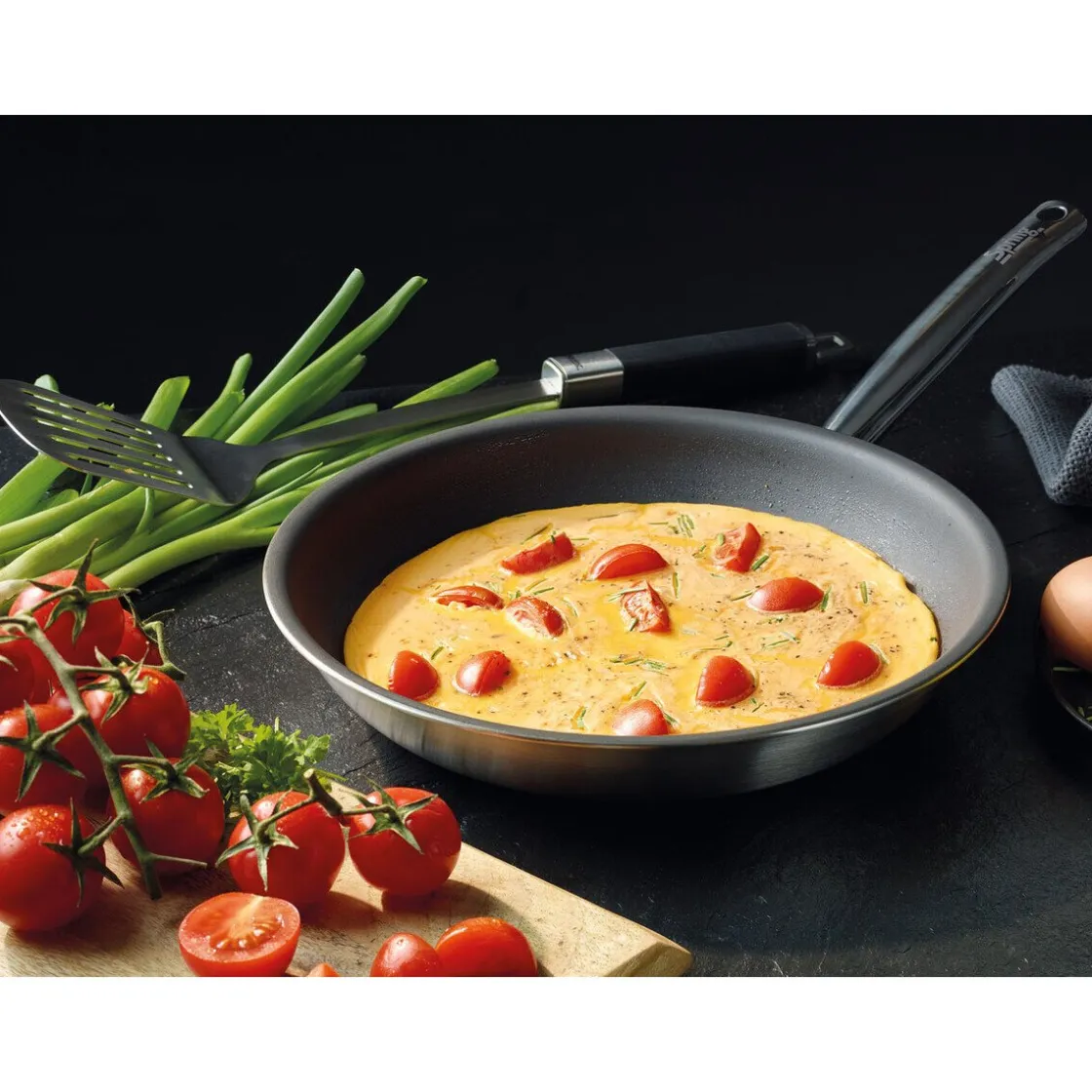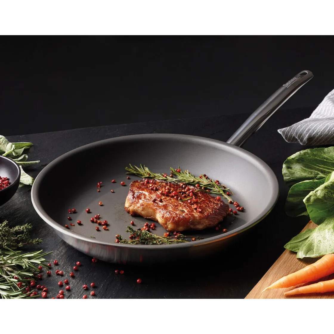 Mit der Bratpfanne Brigade Ultimate von zaubern Sie scharf angebratene, kleinere Portionen, die von einer hohen Saftigkeit und intensiven Aromen geprägt sind. Die innovative Oberfläche ist thermisch mit der obersten Schicht des Mehrschichtmaterials verschmolzen und wird damit zu einem Bestandteil der Pfanne, dessen Antihafteffekt sich durch wenige Tropfen Speiseöl aktivieren lässt. Die hohe Kratzfestigkeit des Stücks erleichtert das Arbeiten und hält auch metallischen Küchenhelfern stand. Bringen Sie mit dieser Pfanne köstliche Leckereien auf den Tisch.