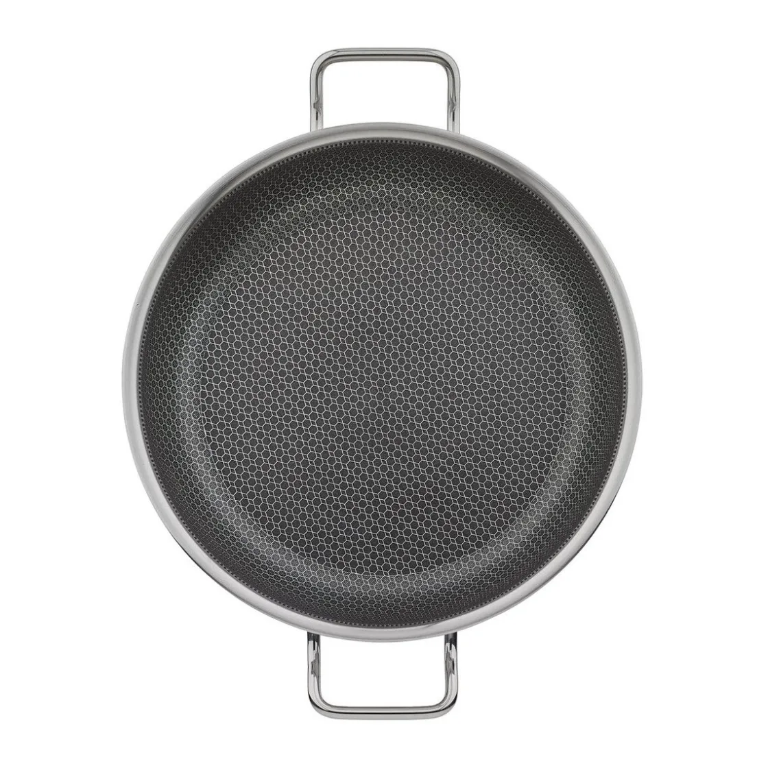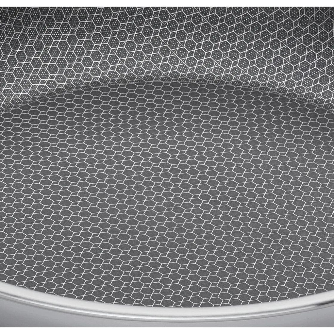 Mit der Servierpfanne XL Vulcano Cut Resist Pure von bereiten Sie große Mengen für die ganze Familie zu. Ob Bratkartoffeln, Fisch oder Geschnetzeltes – mit dieser Pfanne schaffen Sie feinste Röstaromen, eine hohe Saftigkeit und krosse Knusperkrusten. Und das Beste daran ist: Sie können auch metallische Pfannenwender, Fleischzangen oder Spülschwämme in dieser Pfanne verwenden, da sie kaum empfindlich ist und die Antihaftbeschichtung durch ein praktisches Wabennetz aus Stegen geschützt wird.