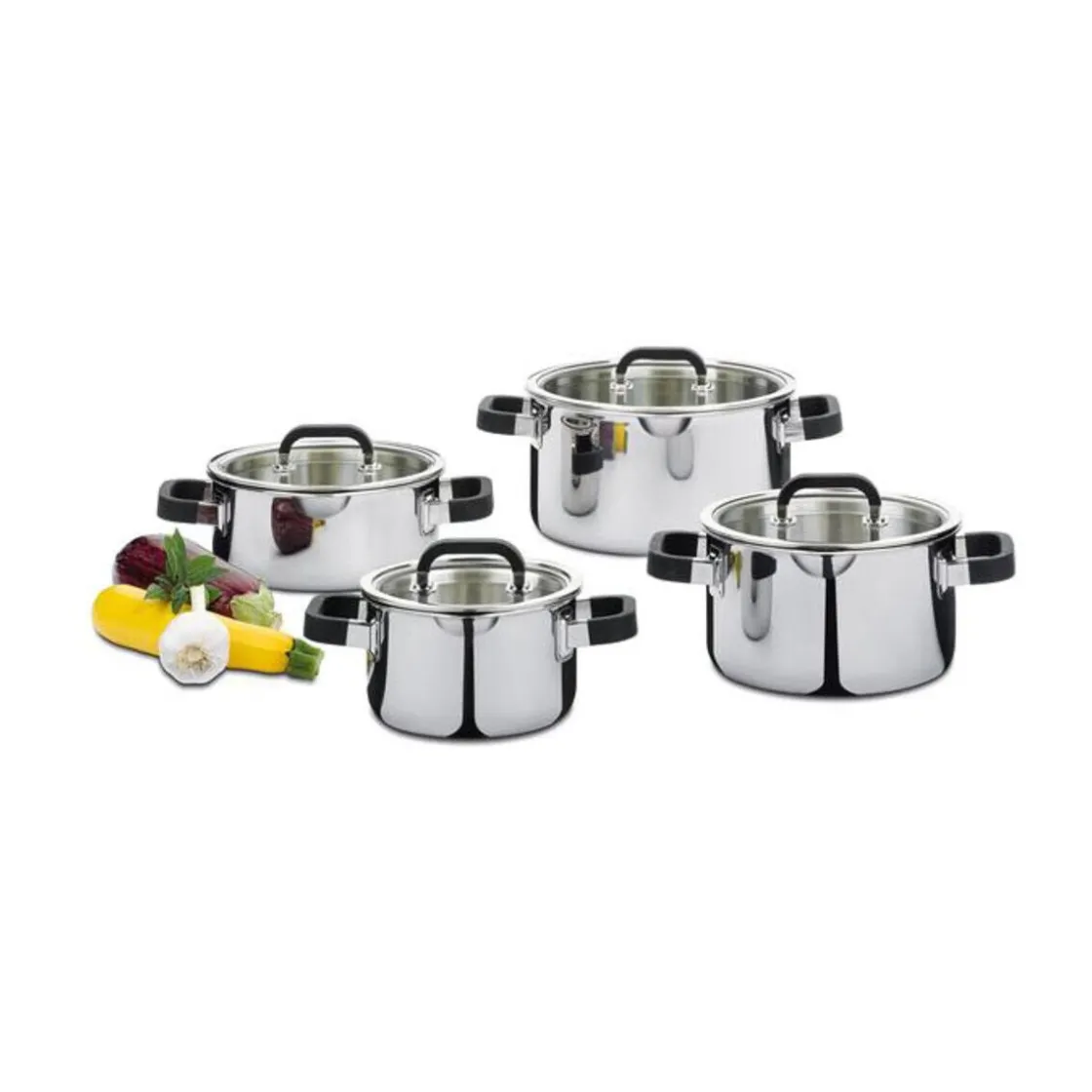 - alle Töpfe haben einen Deckel aus Glas zum Sichtgaren