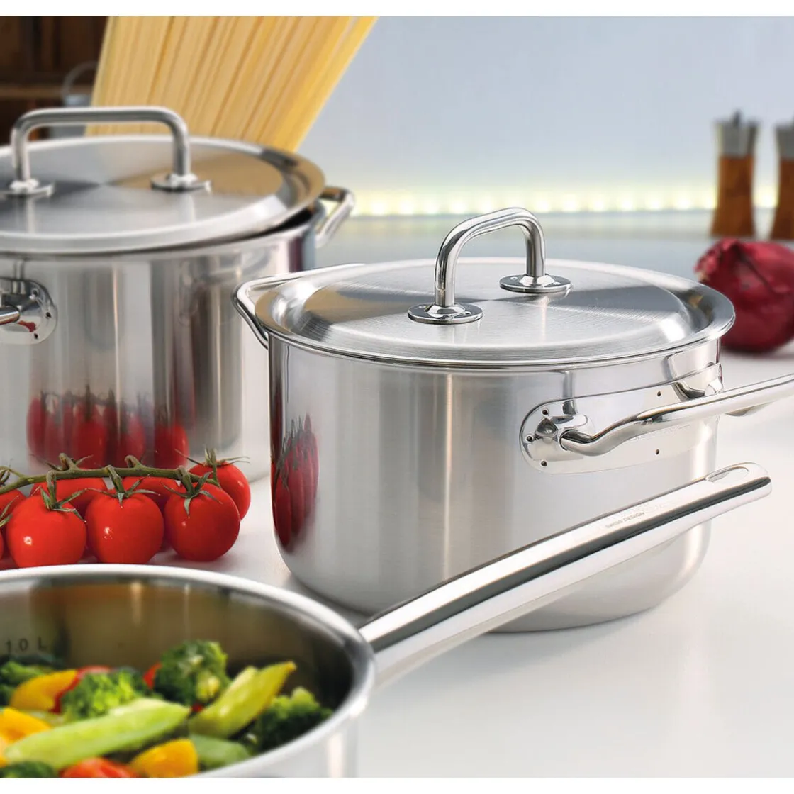 Das hochwertige Topf-Set der Serie Brigade Premium aus dem Hause eignet sich bestens als Grundausstattung für jede Küche. Die Töpfe des Sets bestehen aus robustem Edelstahl und überzeugen sowohl mit ihrem schlichten Design als auch mit ihrer hohen Funktionalität.