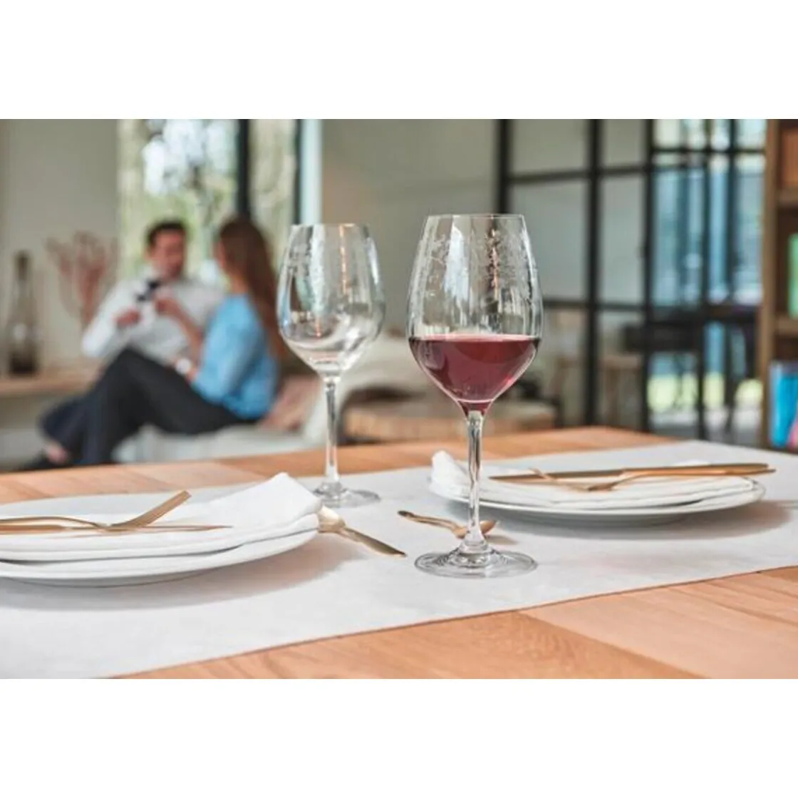 Das Rotweinglas Chateu von Glaskoch besticht mit seiner eleganten Schönheit. Das Glas besitzt eine einfache Form. Es setzt auf eine aufwendig gestaltete Musterung auf der oberen Hälfte des Glases. Zarte Blumen ranken sich spielerisch um das Glas. Dieses Muster schafft es, ins Auge zu fallen, ohne dabei zu aufdringlich zu wirken. Das Rotweinglas Chateau hat eine Höhe von 24 cm und einen Durchmesser von 9 cm. Es besitzt ein Fassungsvermögen von 510 ml.