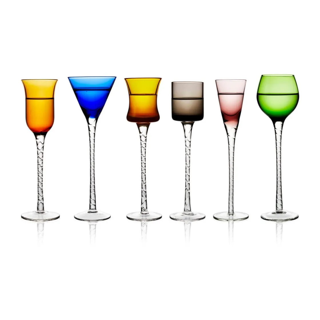 Die Schnapsgläser London von begeistern durch ihre farbliche Vielfalt und den kreisförmig geschwungenen Stiel. Sie lassen sich gut greifen und beim Testen und Genießen von Likör oder Schnaps auch sofort wieder richtig zuordnen. So geht Ihr Glas auch in Gemeinschaft nicht unter.