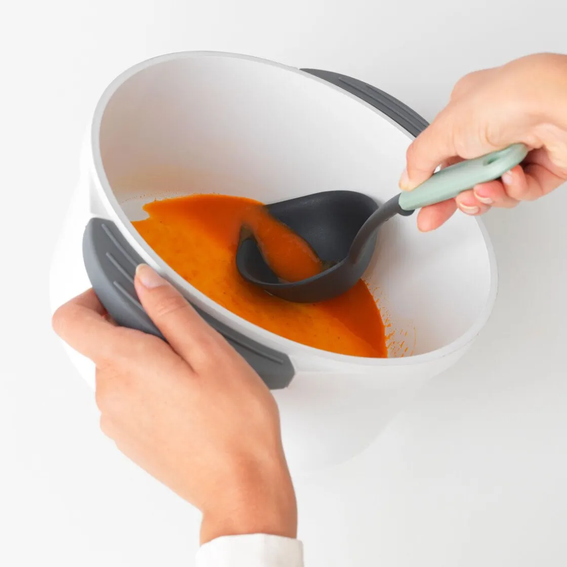 Der Suppenlöffel Tasty+ Jade Green von macht das Kredenzen von Suppen stilsicher möglich. Mit dem praktischen Schnabel lässt sich sogar der letzte Rest aus jedem Winkel des Topfes schöpfen, sodass sich das Stück auch als Schaber Tasty+ Jade Green einsetzen lässt.