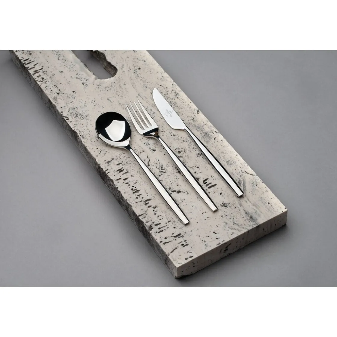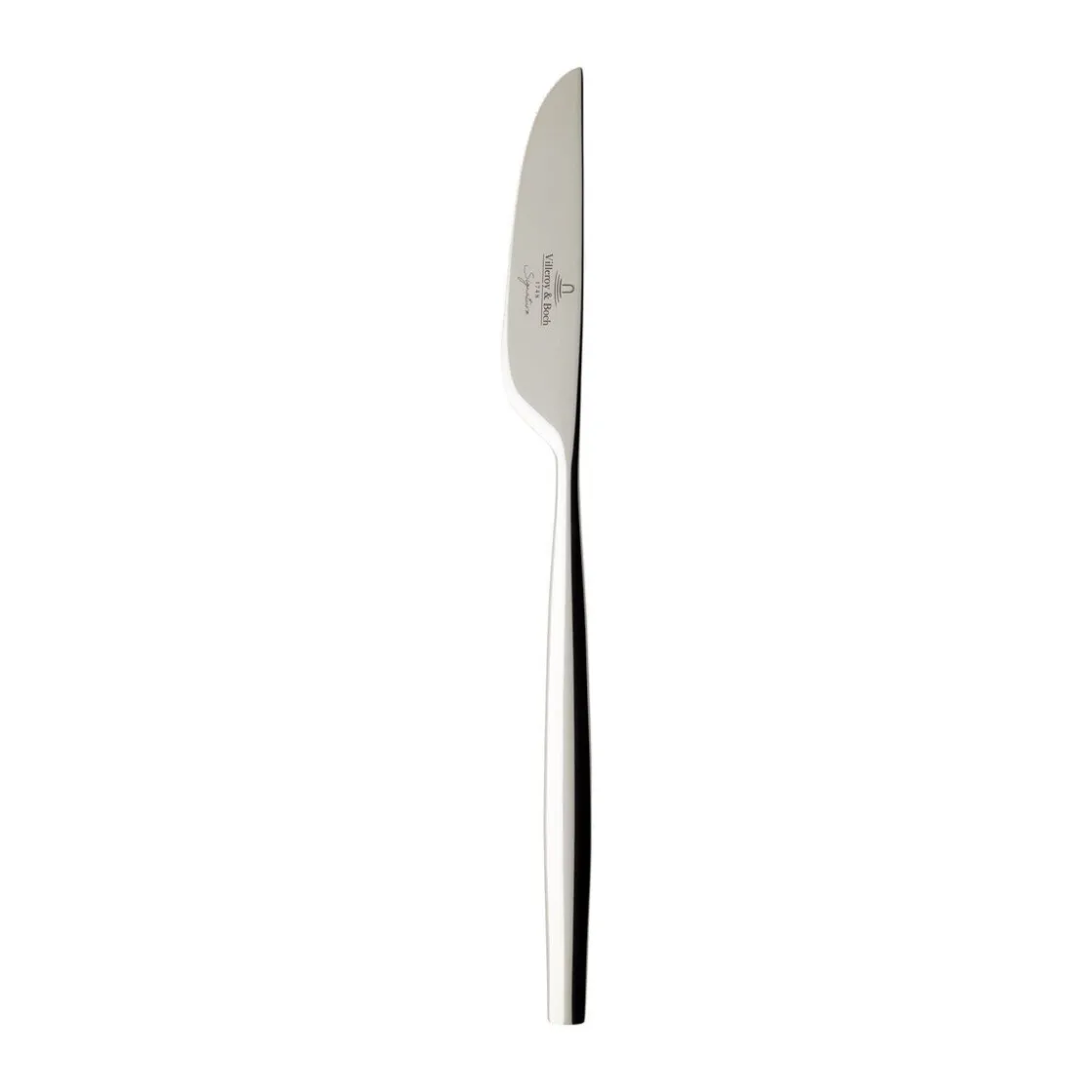 Das Tafelmesser MetroChic von ist von einer akkuraten Linienführung geprägt, die durch eine markante Materialverteilung in ihrer Wirkung verstärkt wird. Mit seinem feinen Glanz eignet es sich hervorragend zum Abrunden der Festtagstafel und macht filigrane Lichtspiele möglich.