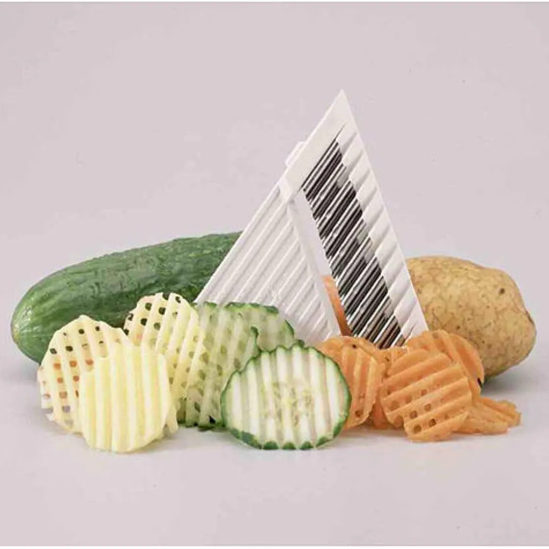 Mit dem Buntschneide-Einsatz von zaubern Sie mit dem Universal-Gemüsehobel des Herstellers tolle Waffel- und Wellenmuster in Ihr Gemüse.