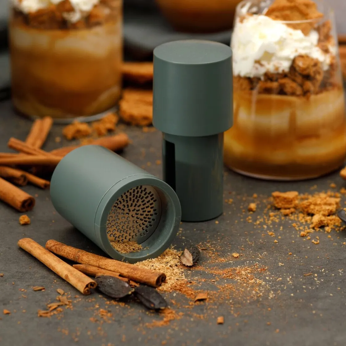 Die Gewürzmühle 2in1 Speciality Eucalyptus Green von kommt in einem schönen Grün daher, das von der Eukalyptuspflanze inspiriert ist und für einen Akzent im Gewürzschrank oder auf der Tafel sorgt. Mit ihren rasiermesserscharfen Klingen macht die Mühle das feine Reiben von Muskatnüssen, Tonkabohnen, Zimt oder schwarzem Pfeffer möglich. Veredeln Sie Ihre Speisen mit dieser handlichen Mühle.