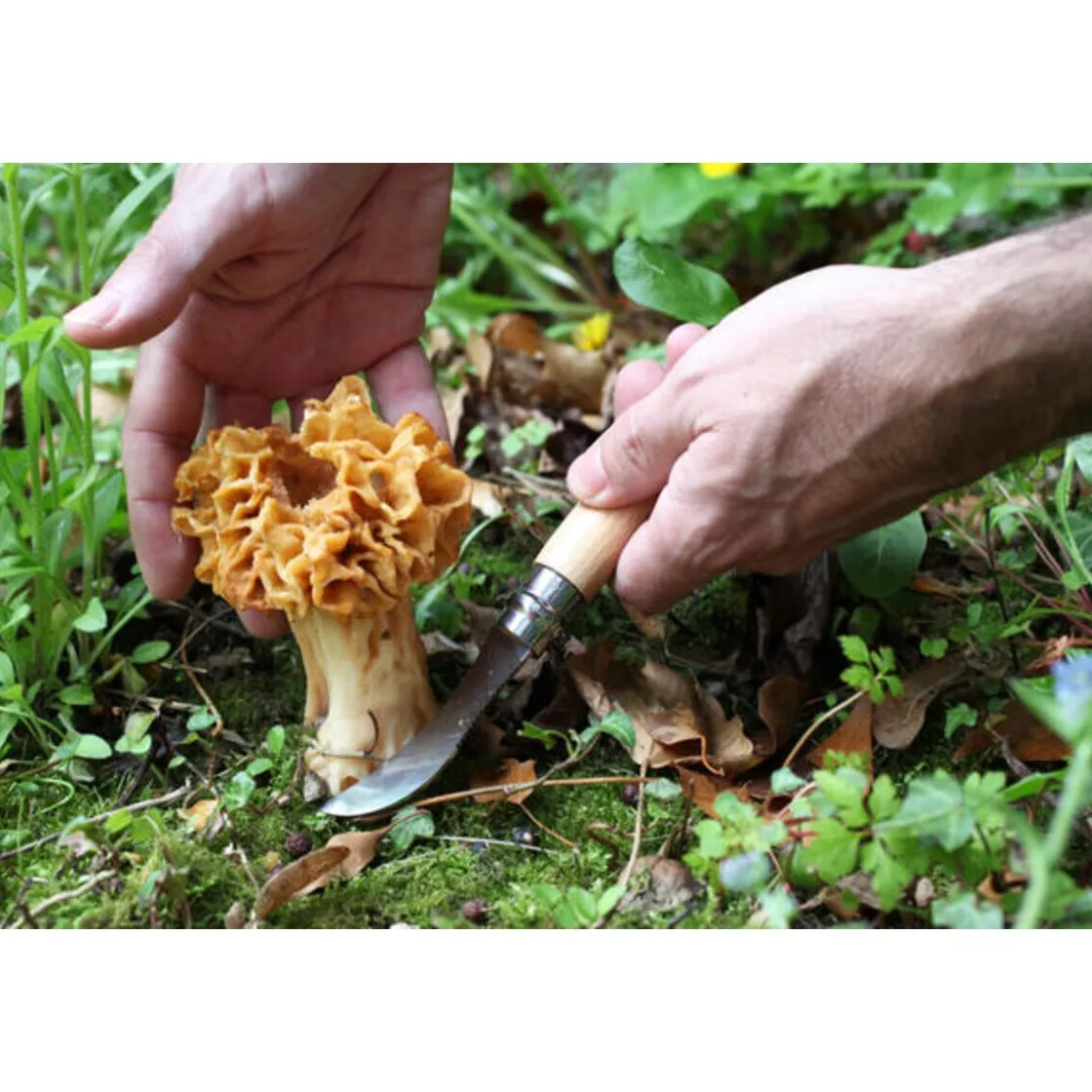 Das Pilzmesser N°08 von ist die optimale Unterstützung beim Sammeln von Riesenschirmlingen oder Wiesen-Champignons. Pilze aller Art lassen sich mit der gebogenen Klinge leicht abschneiden, während kleine Zacken am Messerrücken und feine Borsten am Griffende das Säubern der Pilze erleichtern.