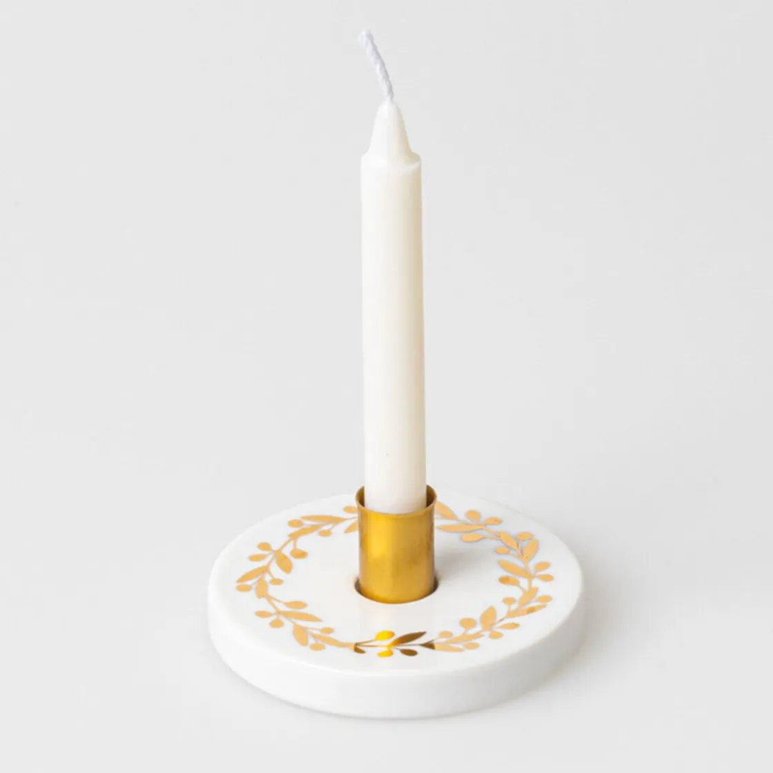 Der Winterschein Kranz von ist ein liebevoll gestalteter Kerzenhalter, der mit einem goldenen Relief belebt wird. Durch die glänzenden Blätter wirkt das Relief wie ein Kranz, der den Kerzenschein sanft reflektiert.