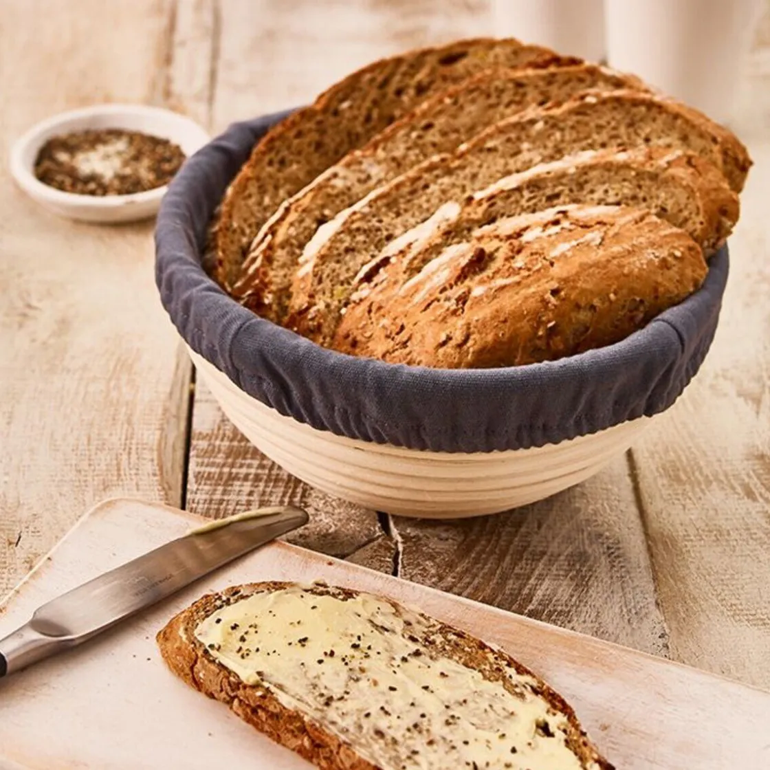 Der hochwertige Bezug für Gärkörbchen der Serie Laib & Seele von ist zurückhaltend und gleichermaßen stilvoll modern designt.