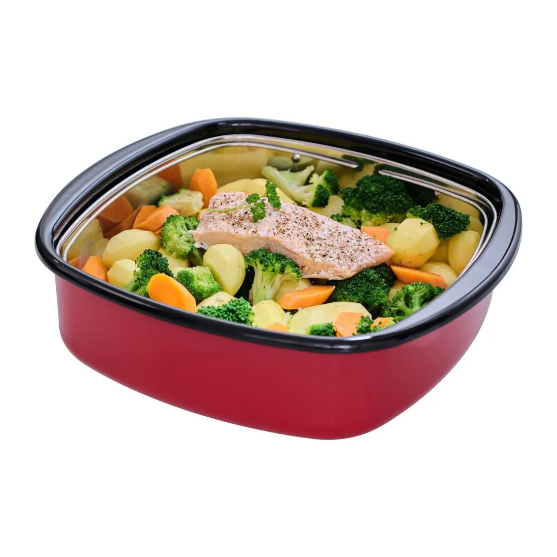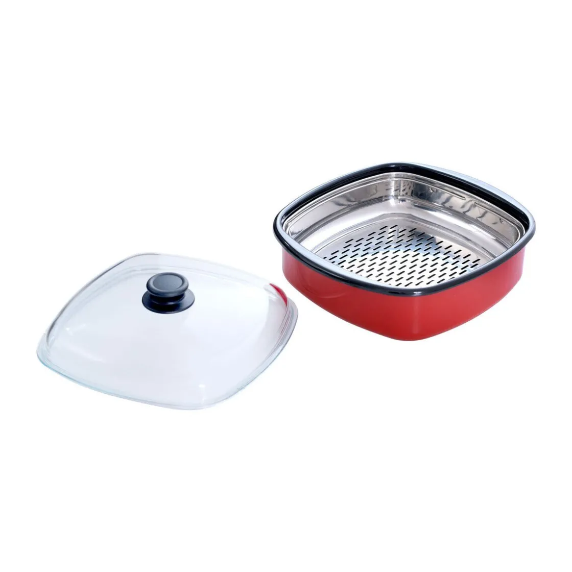 - praktischer Dampfgarer Classic Color Rot mit Gareinsatz und Deckel aus Glas