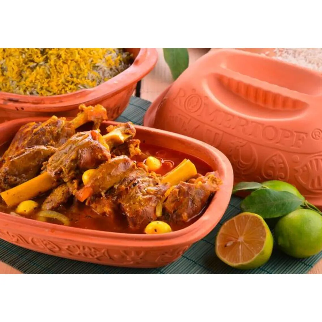Im Römertopf lassen sich Speisen besonders zart und ohne Fett zubereiten. Gleichzeitig bleiben Aromen und Nährstoffe erhalten. Mit dem Römertopf Thermo kommen vier Personen ideal aus. Die Fertigung aus Keramik stammt von der Firma Römertopf.
