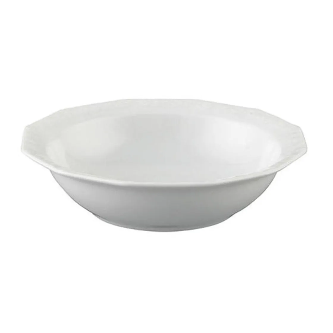 Die Müsli-Schale aus weißem Porzellan besticht durch ihre vieleckige Form. Sie eignet sich für das alltägliche Frühstück sowie als Dessertschale bei einem geselligen Menü. Durch das feine Relief an der abgesetzten Kante setzt sie klassische Akzente. In Kombination mit Tafelgeschirr, das ebenfalls aus der Serie Maria stammt, wirkt die Schale besonders dekorativ. Das Hartporzellan ist äußerst beständig und sowohl für die Spülmaschine als auch für die Mikrowelle geeignet.
