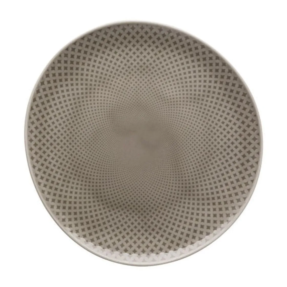 Der flache Teller Junto Pearl Grey ist eine tolle Ergänzung zu anderen Dekoren und Materialien der Kollektion Junto, aber auch ein starker Solist und Hingucker.