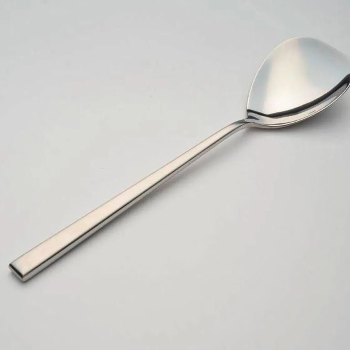 Mit dem Salatbesteck aus der Serie Cantone von lässt sich Salat besonders gut greifen und auf dem Teller drapieren. Die kantigen Griffe mit ihren abgerundeten Ecken liegen gut in den Händen, während die breiten Laffen den nötigen Halt gewährleisten.