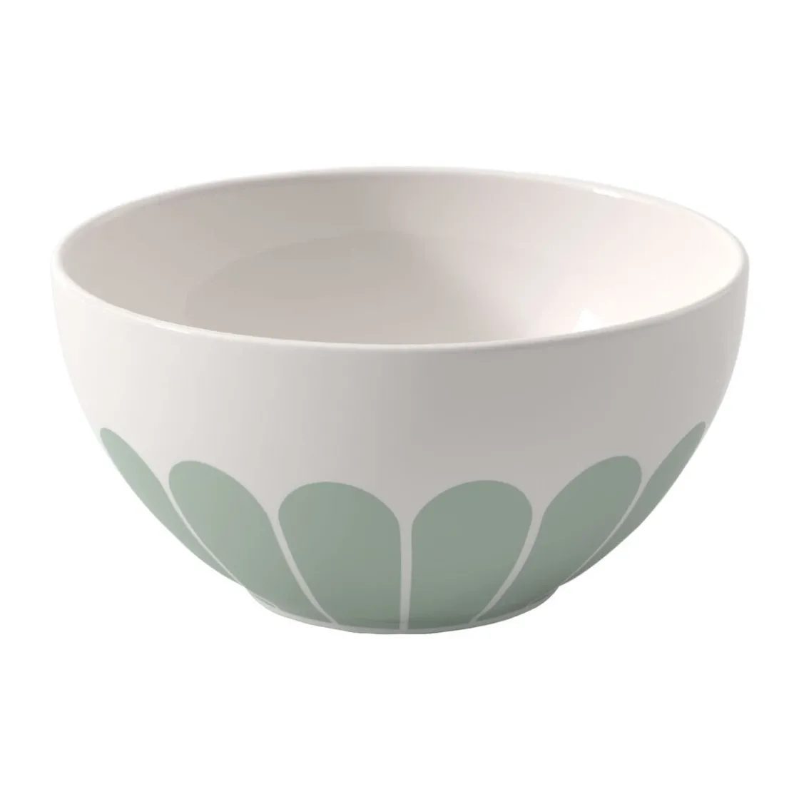 Mit der Müslischale Fleur vert von kommt florale Anmut auf den Tisch. Die grafischen Elemente des Dekors wirken wie die Blütenblätter einer Blume und sorgen für einen verspielten Look, der sich zu zeitlos schönen Arrangements mit lebensfrohem Ausdruck kombinieren lässt. Bringen Sie mit dieser Schale die natürliche Beschwingtheit des Sommers auf den Tisch.