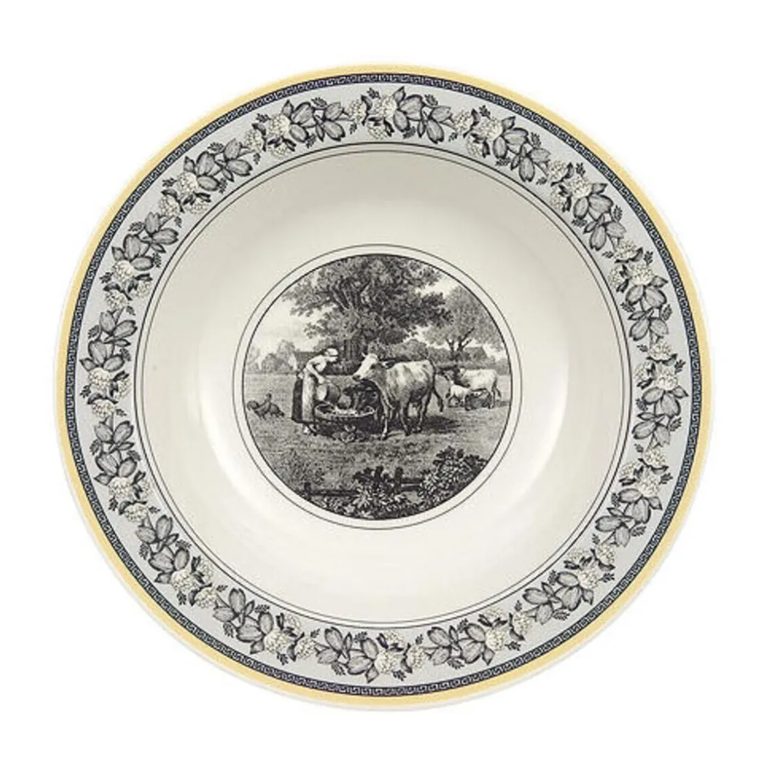 Audun Ferme ist das Aushängeschild der Serie Audun. Bei dieser Geschirrkollektion von Villeroy & Boch steht ganz klar das Motiv im Vordergrund. Detailgenau und liebevoll sind die brillanten Landschaftsmalereien aufgetragen. Die ländlichen Szenen und Dekorvarianten sind von über 200 Jahre alten Originalzeichnungen Villeroy & Bochs inspiriert. Da sich die prägnanten Muster stets wiederfinden, lassen sich alle Artikel perfekt mit den Tellern und Bechern der anderen Dekore der Serie Audun von Villeroy & Boch kombinieren. Audun Ferme ist aus relativ dickwandigem Premium Porcelain gefertigt, was dieser Serie nicht nur herausragende Gebrauchseigenschaften verleiht, sondern auch ihre robuste Landhausattitude unterstreicht. Alle Stücke sind spülmaschinenfest.