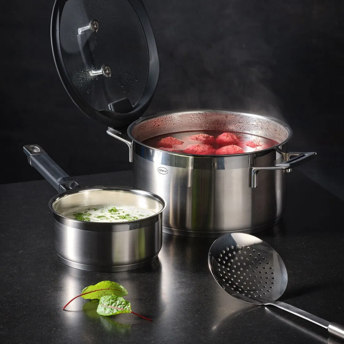 Der flache Schaumlöffel von ist ein unentbehrlicher Helfer in der Küche – Dank seiner flachen Ausführung mit groben Löchern eignet er sich ideal zum Herausheben von Knödeln aus dem Topf und zum Abseihen verschiedenster Speisen.