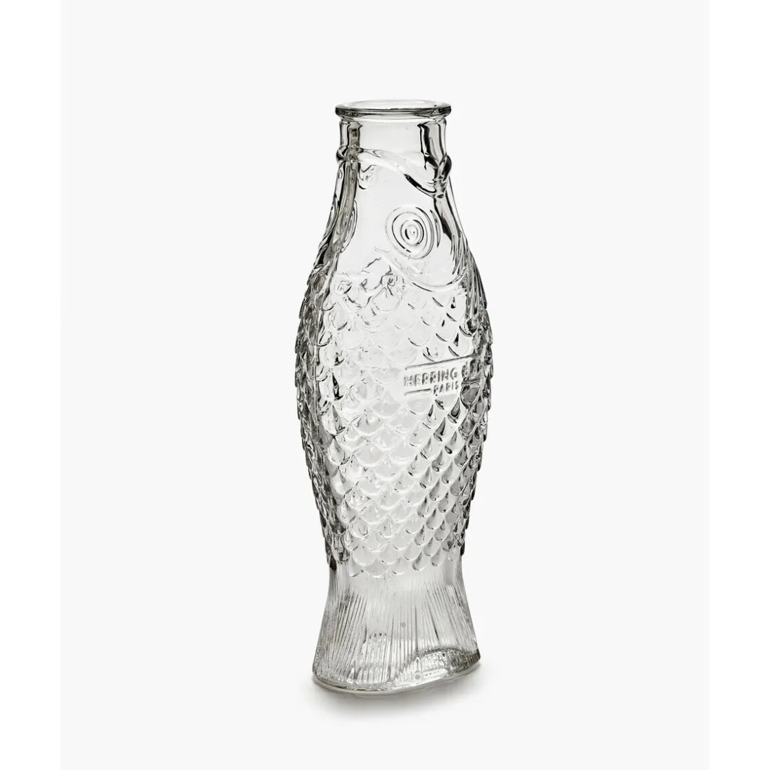 Mit der Karaffe Fish & Fish von servieren Sie erfrischendes Wasser in einer kultigen Fischform. Über das Maul des Fisches ist das Befüllen und das Ausgießen möglich, wodurch die Flasche an einen Springbrunnen erinnert.