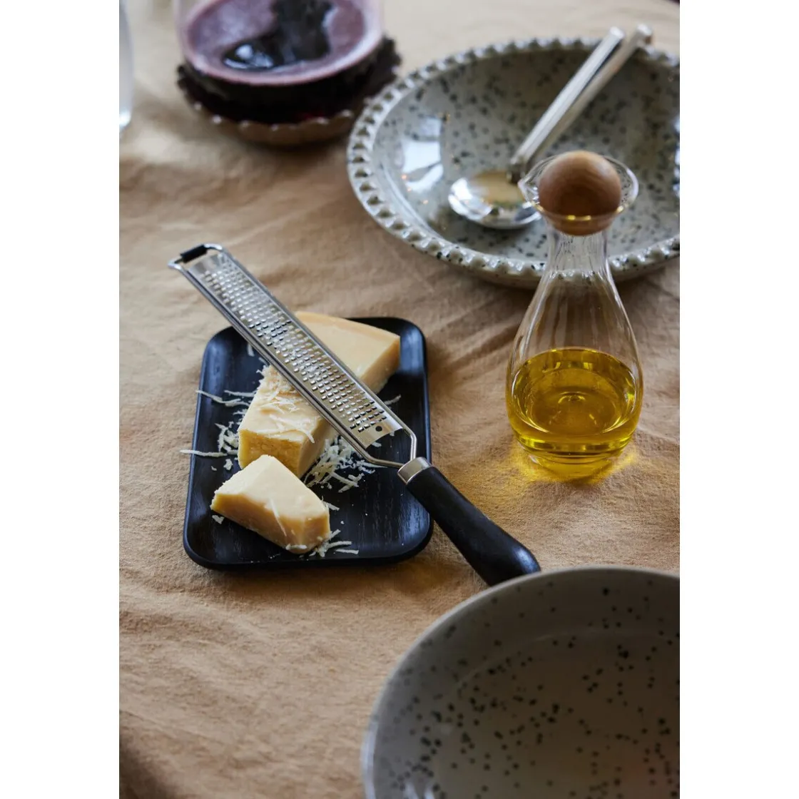 - nach oben gebogener Rand für ein sicheres Anrichten und Servieren