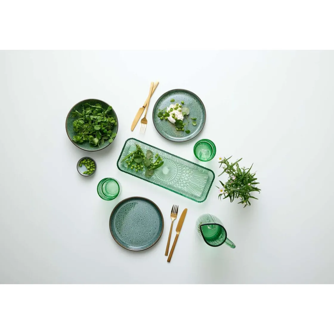 Mit der Servierplatte Kusintha von lassen sich hübsche grüne Oasen auf der Tafel arrangieren. Der lebensbejahende Farbton und die feine Musterung verleihen der Platte eine ansprechende Wirkung, die zum Zugreifen und Genießen einlädt.
