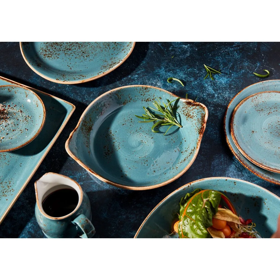 Zum Servieren von Snacks, Nachspeisen, Hauptgerichten und vielen weiteren Köstlichkeiten eignet sie die hochwertige Platte der Serie Craft von besonders gut. Die formschöne rechteckige Platte glänzt in einem rustikalen Design und einem edlen Blau.