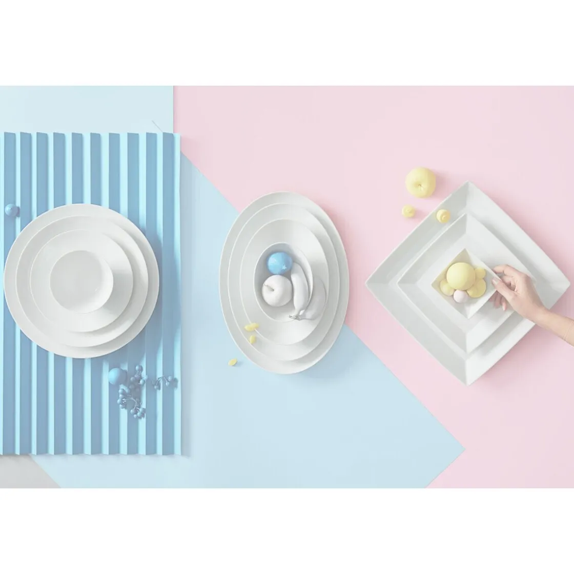 - ovale Platte der Geschirrkollektion Loft Weiß