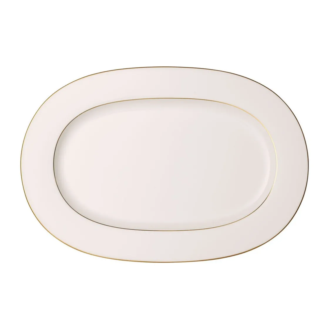 Auf der Servierplatte Anmut Gold von kommen Antipasti, Häppchen und Spieße hervorragend zur Geltung. Die brillierenden Dekorlinien aus 20-karätigem Gold schmeicheln Ihren Köstlichkeiten und setzen sie gekonnt in den Mittelpunkt des Geschehens. Verwöhnen Sie Ihre Gäste durch ein zeitloses Arrangement mit hoher Wertigkeit.