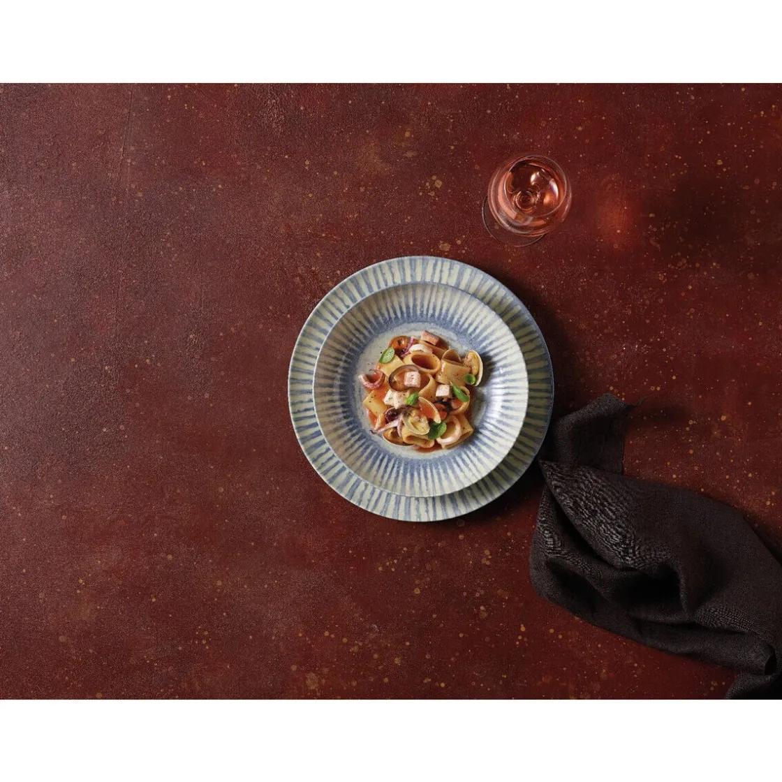 Mit dem flachen Teller Sunlight Blue von kommt eine natürlich angehauchte Note auf den Tisch, die mit einer erfrischenden Brise eines blauen Dekors auf moderne Weise belebt wird. Hauptspeisen aller Art werden durch diesen Speiseteller gekonnt in das Zentrum gestellt und liebevoll hervorgehoben. Laden Sie Ihre Gäste mit diesem Geschirrstück zum Genuss ein.
