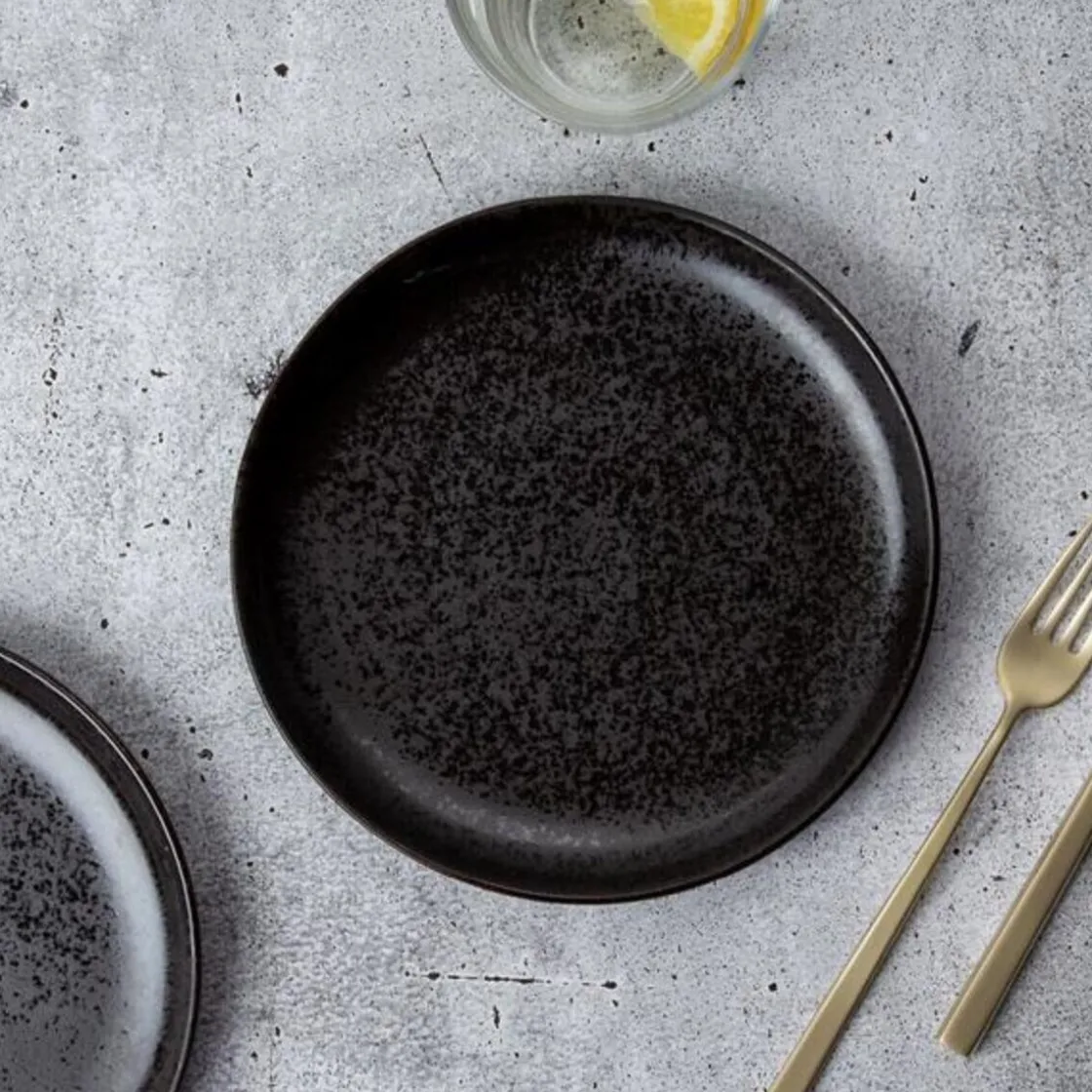 Durch den Speiseteller der Serie Java von werden Ihre Speisen jeden Tag aufs Neue liebevoll kontrastiert und in ihrer Wirkung verstärkt. Die einzigartige Farbgebung des Porzellantellers zeugt von einem trendigen Schwarz, das an javanisches Vulkangestein angelehnt ist und von einem erdigen Braun an den Rändern akzentuiert wird. Liebevoll aufgetragene, variierende Glasursprenkel runden den Auftritt ideal ab.