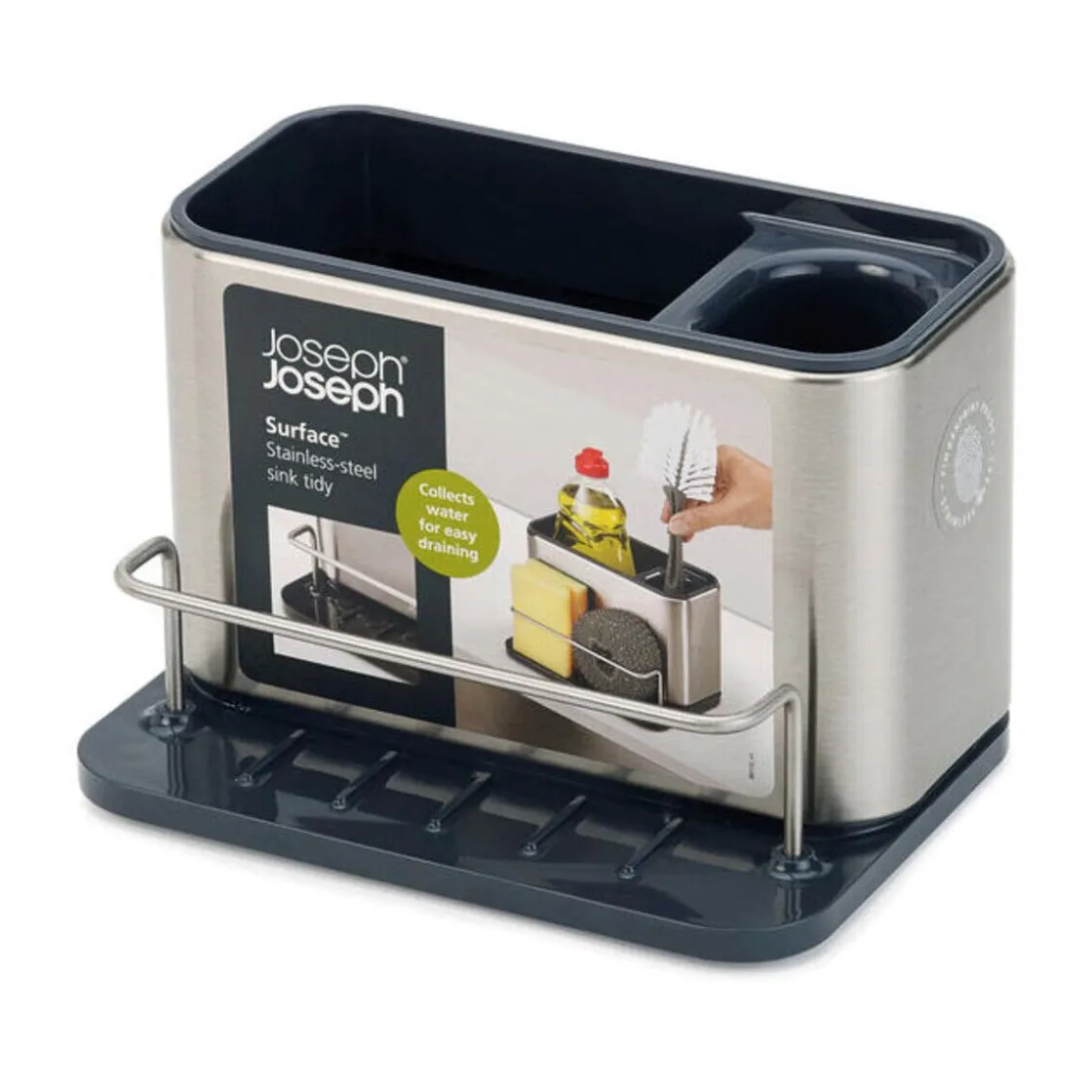 Mit dem Abtropfbehälter der Serie Surface von kommt anmutige Ordnung an Ihr Spülbecken. Mit einem Griff haben Sie Bürsten, Spülmittel oder Schwämme zur Hand, ohne dass sich überschüssiges Wasser ansammelt.